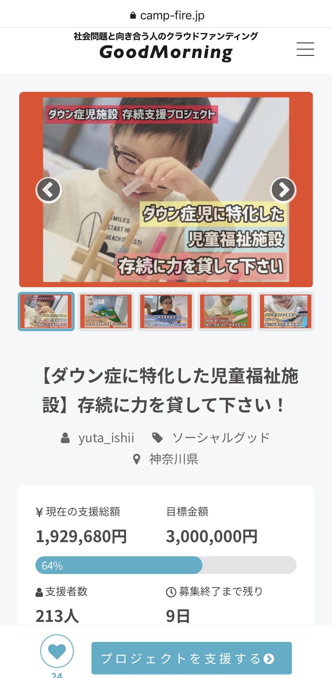 「児童発達支援にじいろ」の存続を掛けたプロジェクトも【残り9日】達成率は64%となりました!CAMPFIREを通じてご支援を頂きました皆様、物資などのご支援を頂きました皆様、そして様々な方法でシェア頂いた皆様、本当に本当にありがとうございます。皆様から頂きましたお気持ちをチーム一丸となって形にして参ります。残り9日間、宜しければ、引続き、ご支援・シェアをお願い致します。