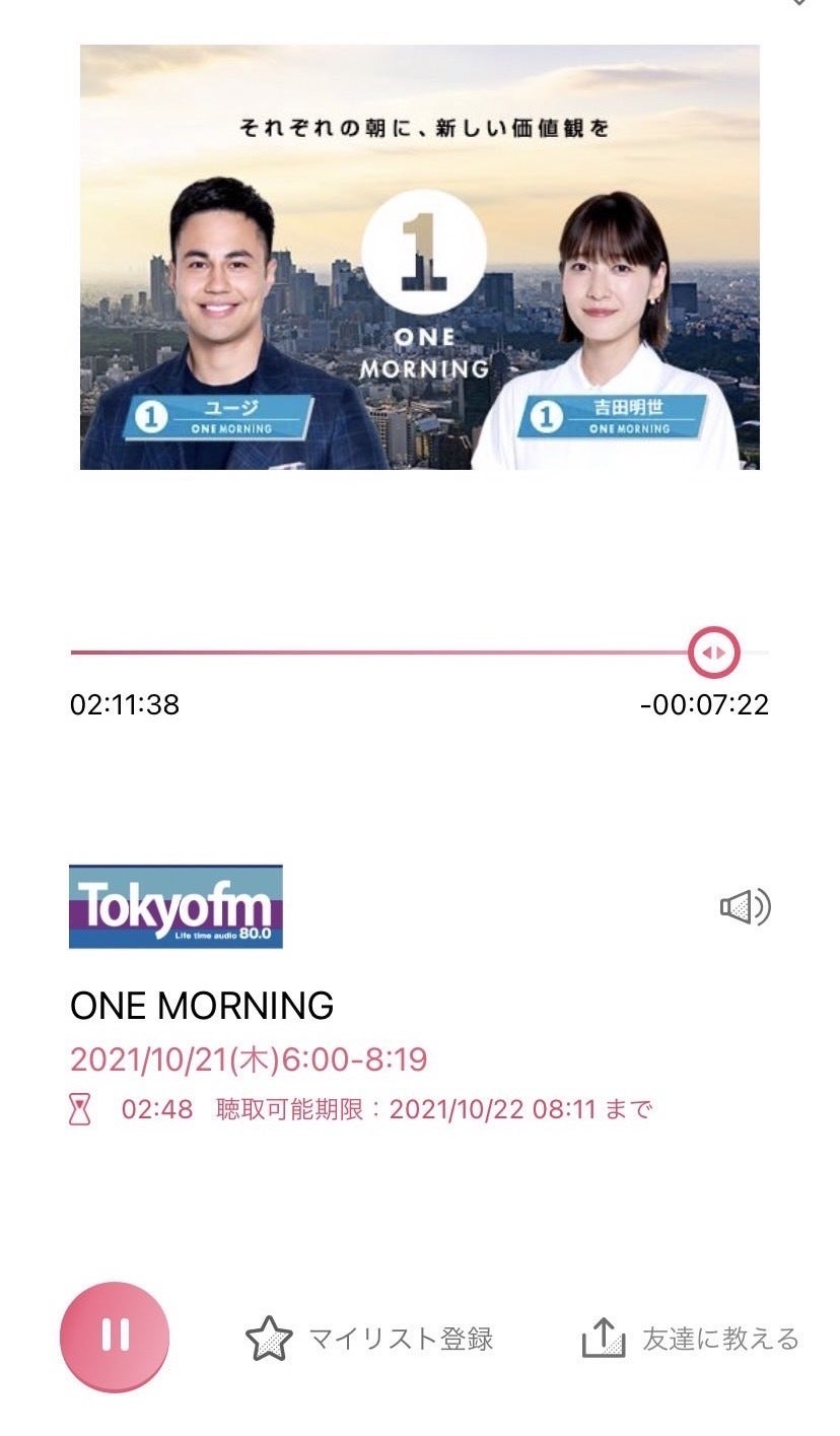 こんばんは。昨日の朝、TOKYO FMのONE MORNINGで紹介頂きました。MCはユージさんと吉田明世さん。ダウン症に関しても、児童発達支援の現状に関してもお話頂き、多くの方々に知ってもらえました。ユージさん、吉田さん、関係者の皆様方、本プロジェクトを取り上げて下さりありがとうございました。【残り9日】引続き、ご支援・応援・シェアを、お願い致します。