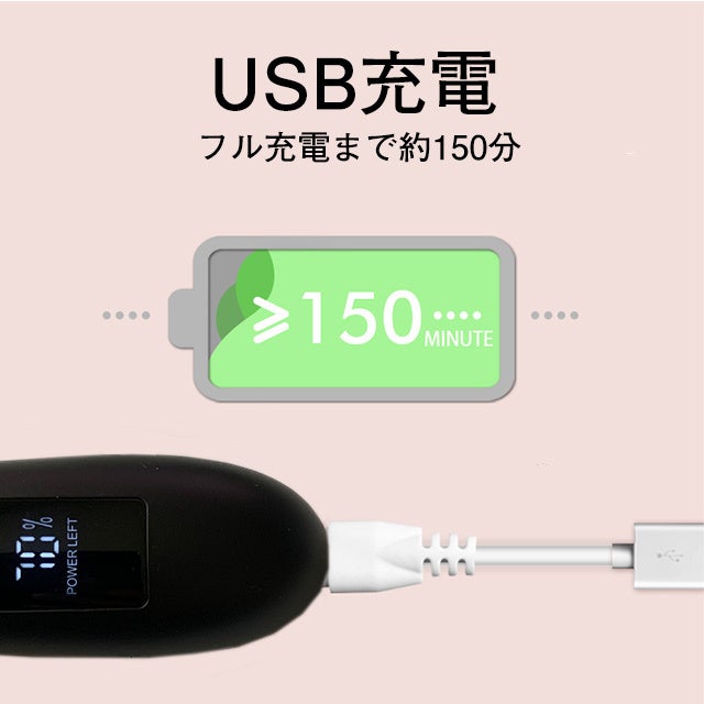 ・電地残量がLED表示で一目で確認できるからケア途中で突然止まりません。