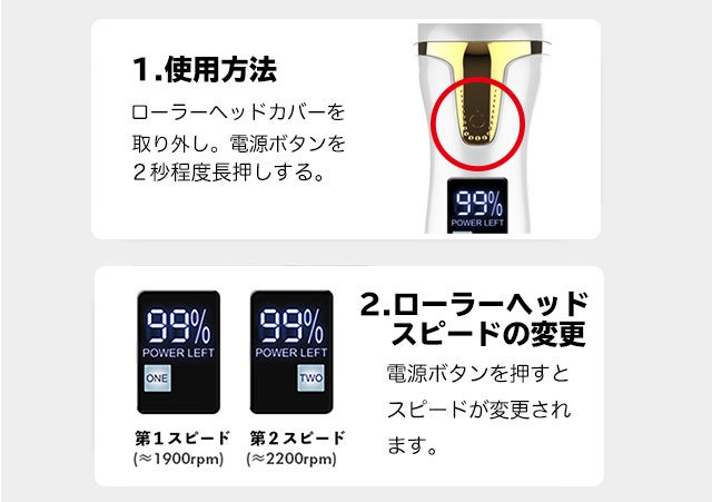 ・ローラーヘッドが2種類あるから状態に応じて適切にケアできます。