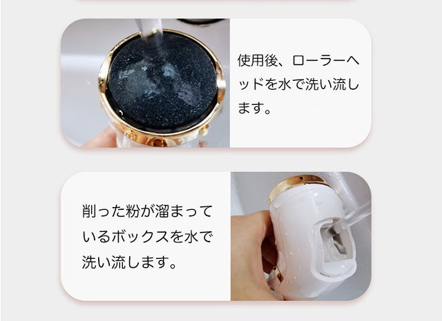削った角質を吸い込むので飛び散らないので掃除が簡単。