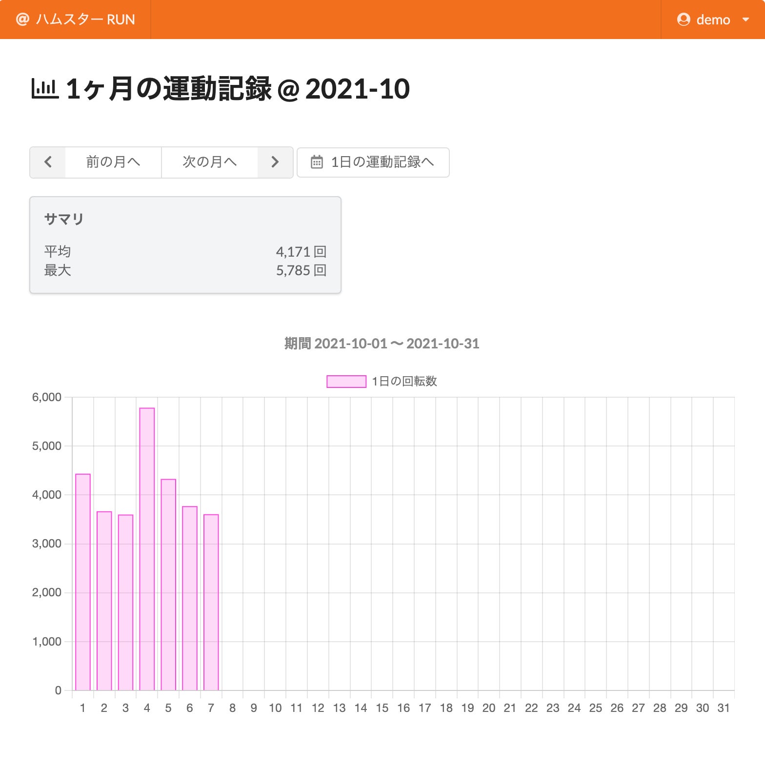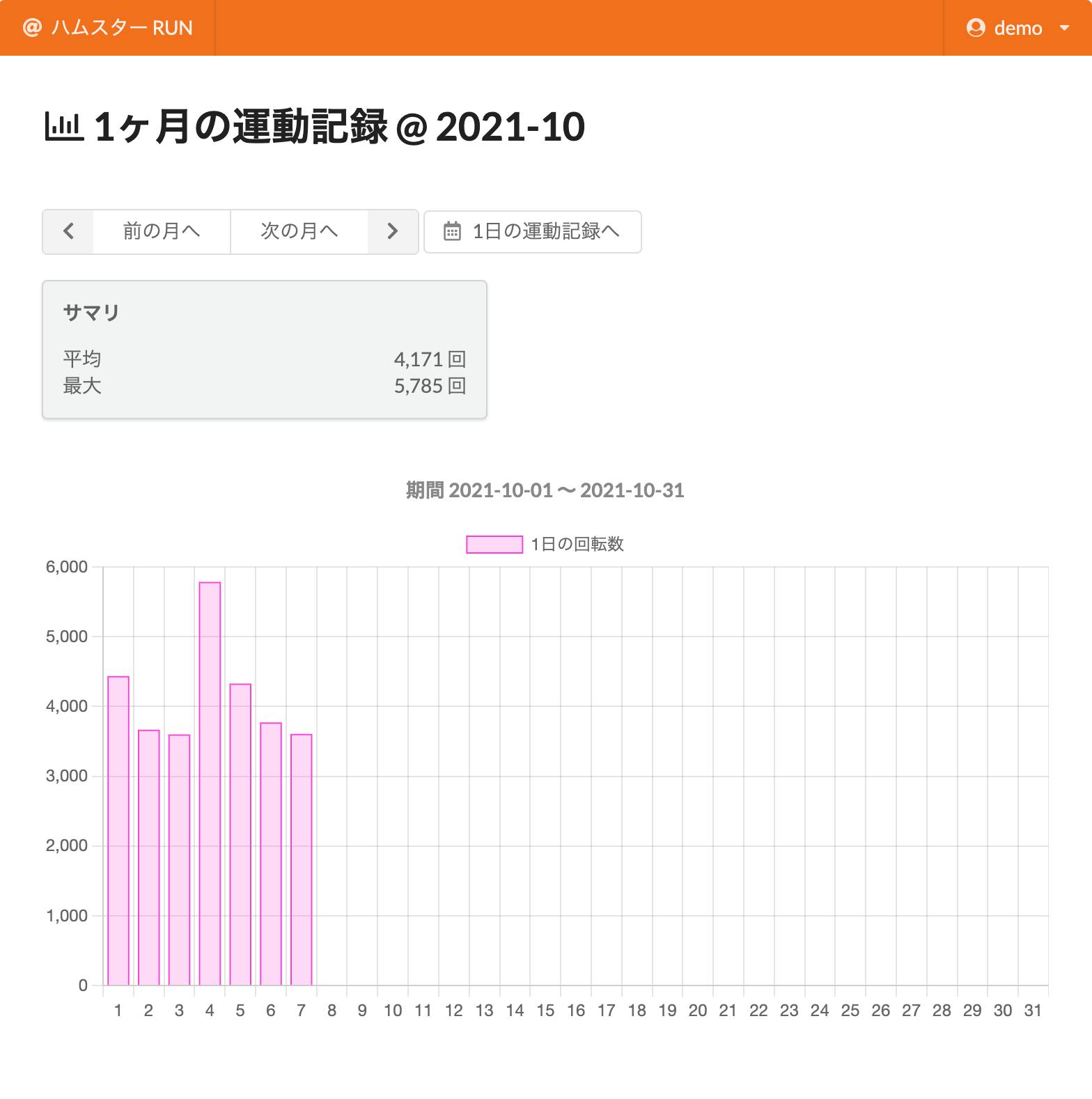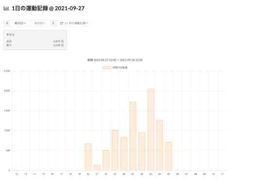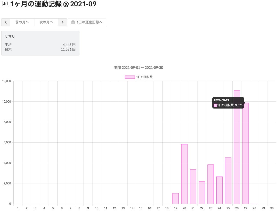 運動記録確認用のアプリでは現状1日の回転記録と1ヶ月の回転記録を確認することができます。
