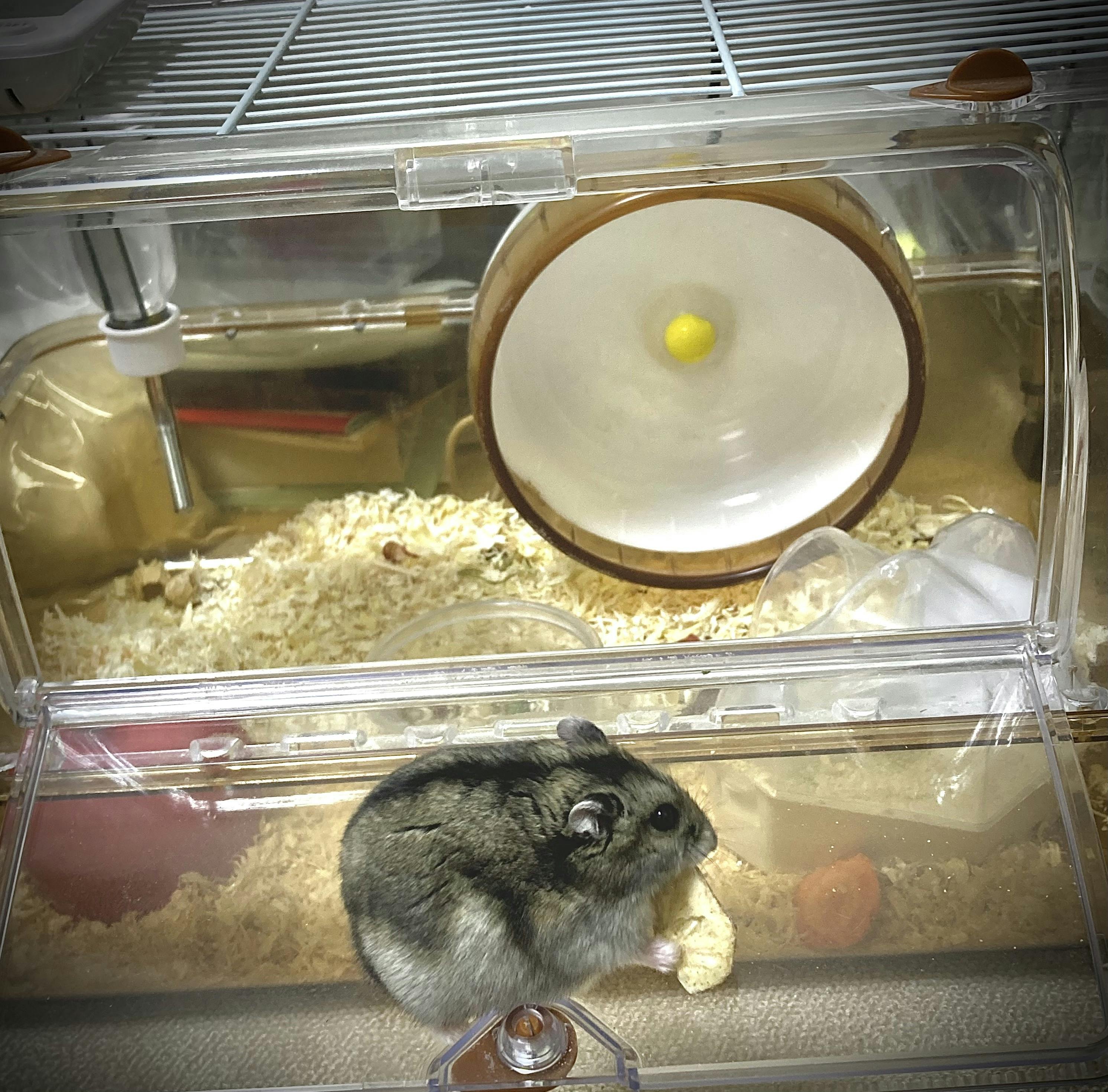 このプロダクトをつくろうと思ったきっかけはメンバーの一人がジャンガリアンハムスター(名前は「ホネ」)を飼っていて、普段から餌としてペレット以外に野菜や昆虫を与えるなど大切に育てているのですが、ハムスターなどの小動物は健康状態を見た目から判断することが難しく、また市販に小動物用の健康維持デバイスがあまり出回っていないことから、回し車の回転数を計測できるIoTガジェットを自作することにしました。