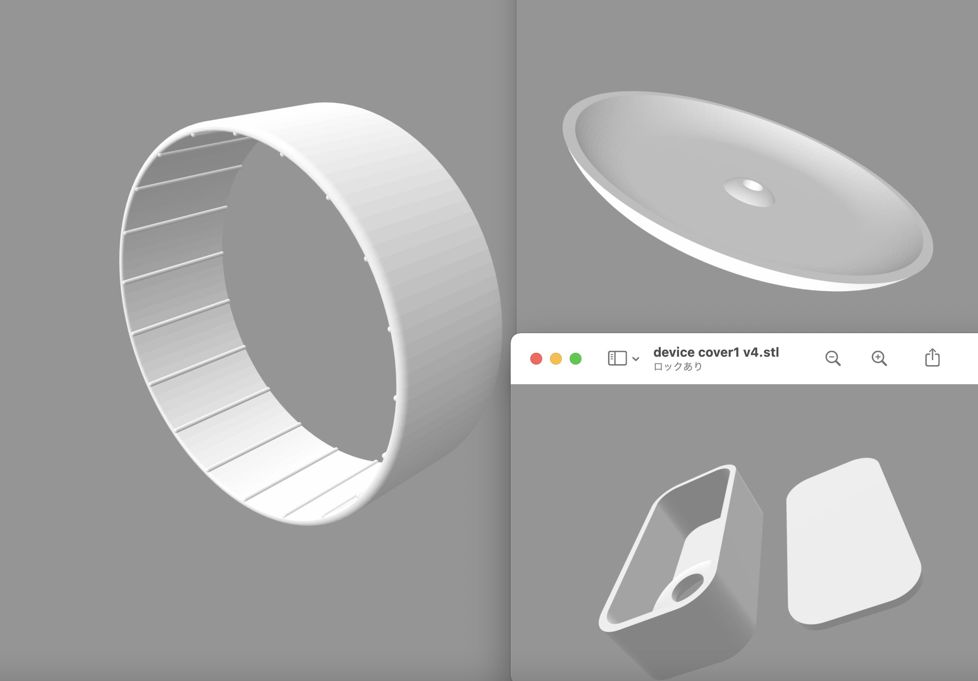 [3Dプリンターで出力予定の回し車デバイスの3Dモデルの一部]
