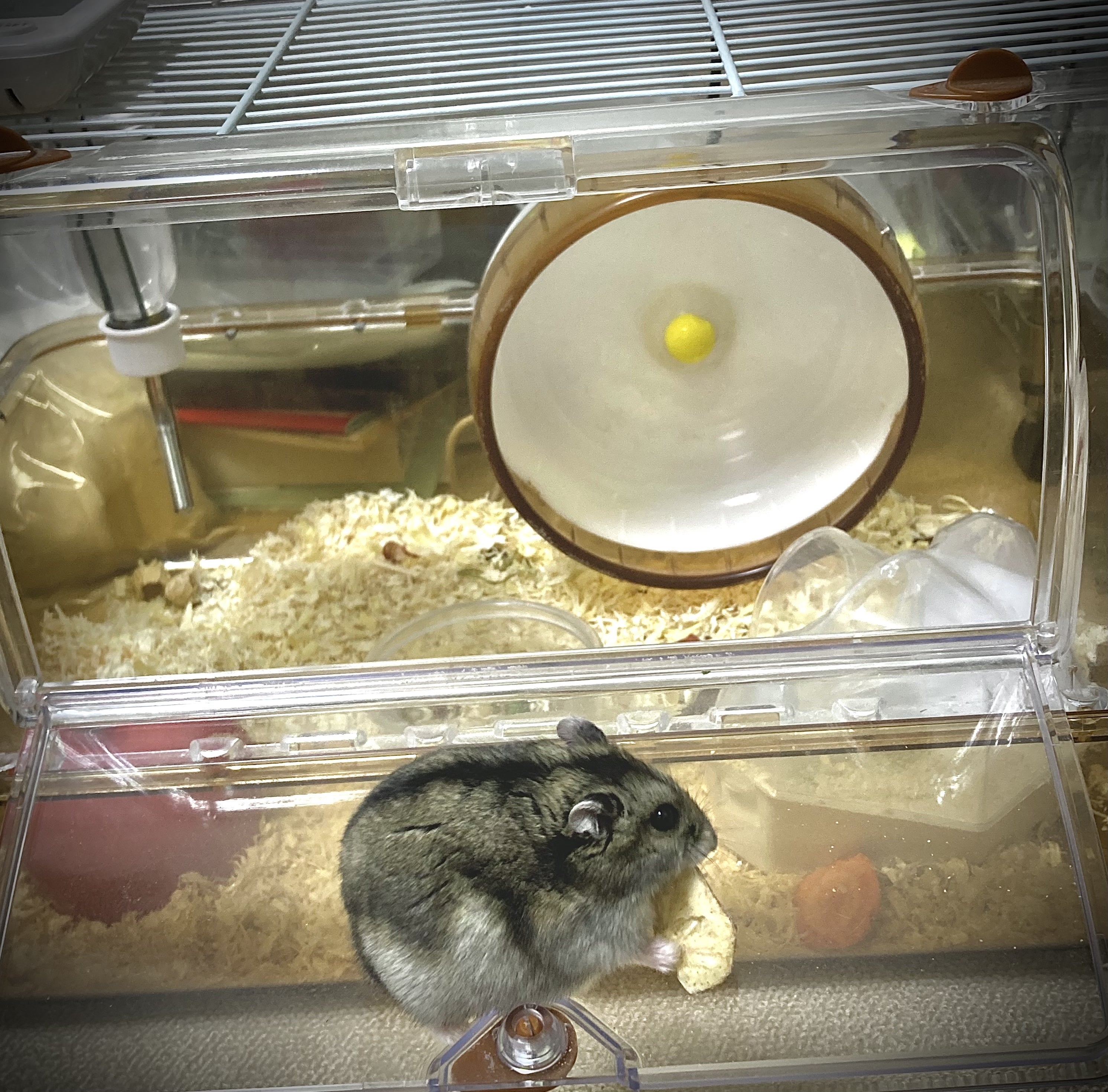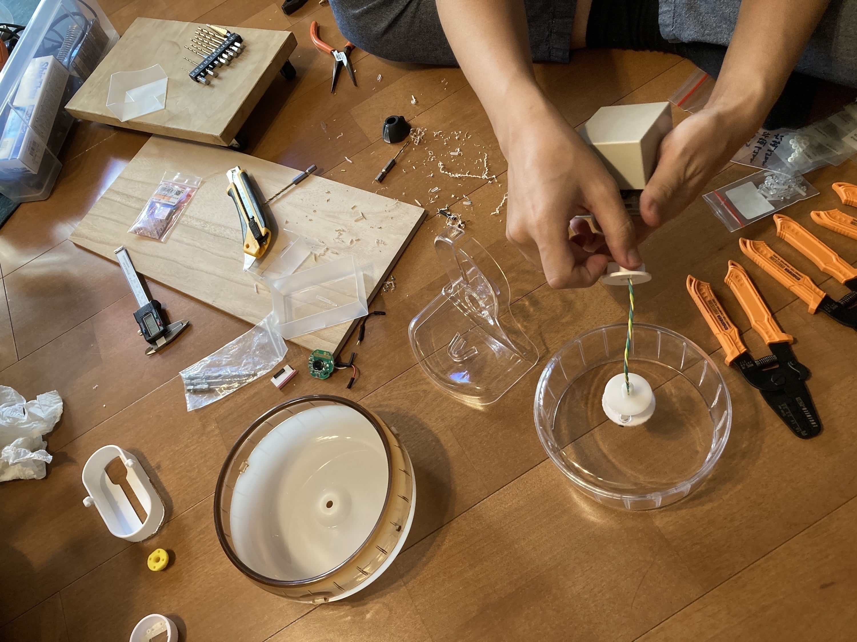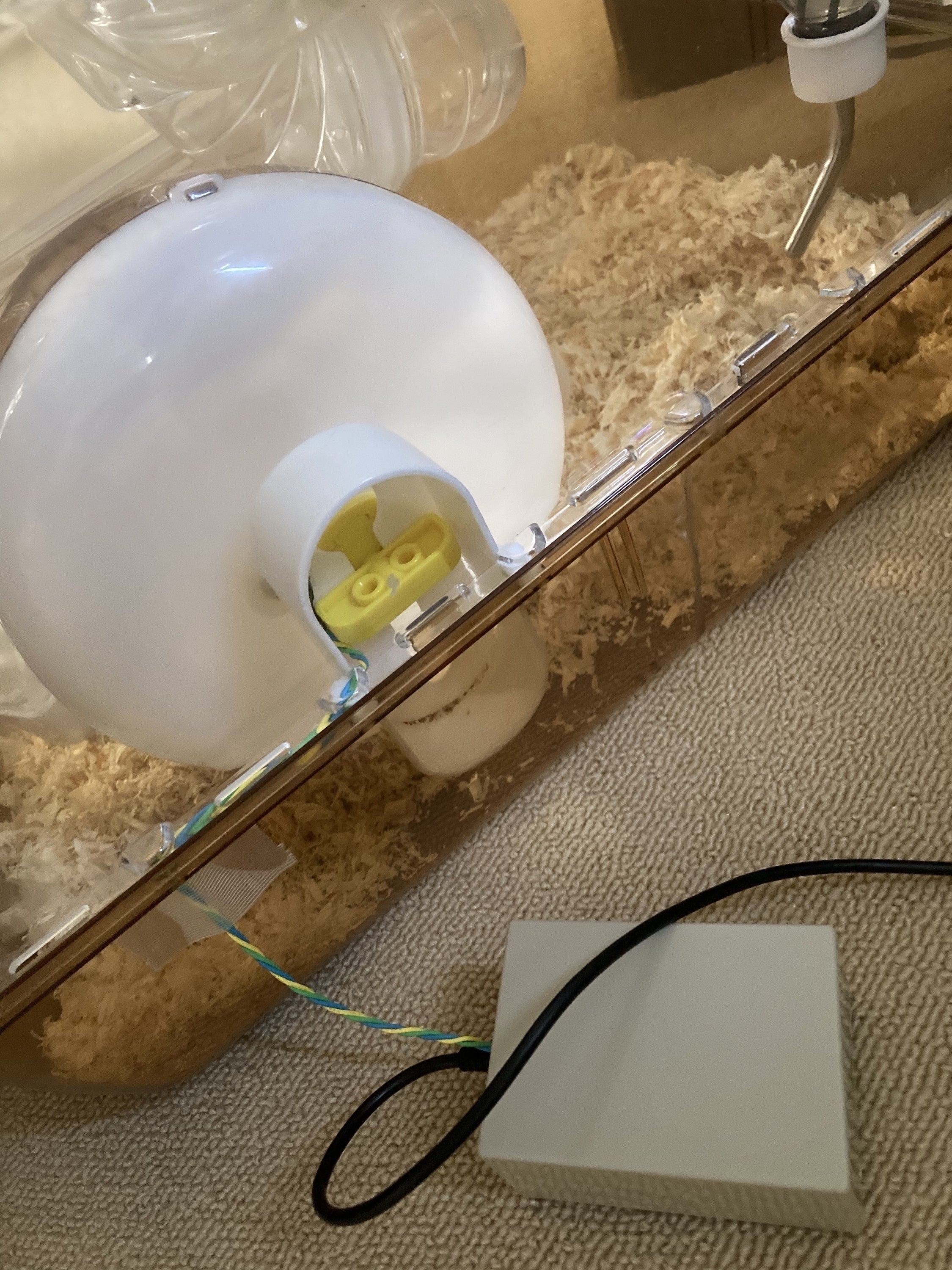 現在既製品の回し車を改造したプロトタイプの回し車デバイスが稼働中ですが、磁気を感知させるためにセンサーを磁石に相当近づける必要があり、回し車の回転軸にドリルで穴を開けてセンサーを取り付ける方法を採用しています。そのため、3Dプリンターを使って専用の回し車を作成する予定です。