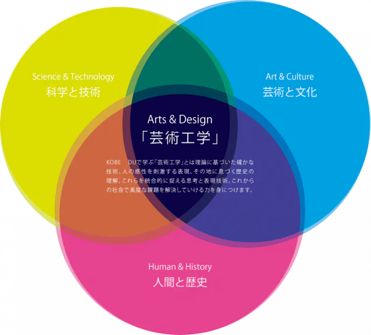 芸術工学とは、単に芸術と工学を結びつけたというわけではなく、芸術と技術の融合による「デザイン」の学問です。理論に基づいた確かな技術や、人の感性を刺激する表現など、美しさと機能性の中で生まれたデザインのことを言います。