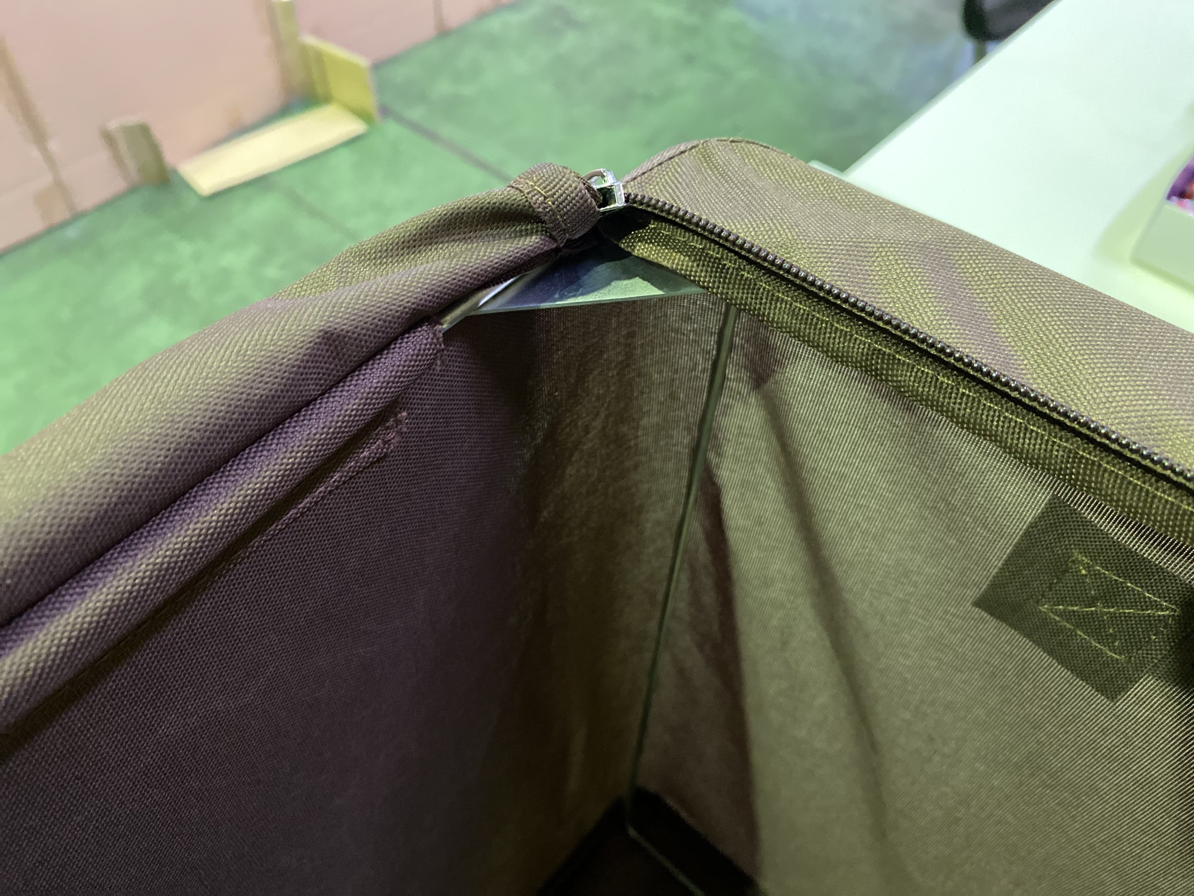 正面と上部にはファスナーが付いており、どちらからでも出し入れが可能。
