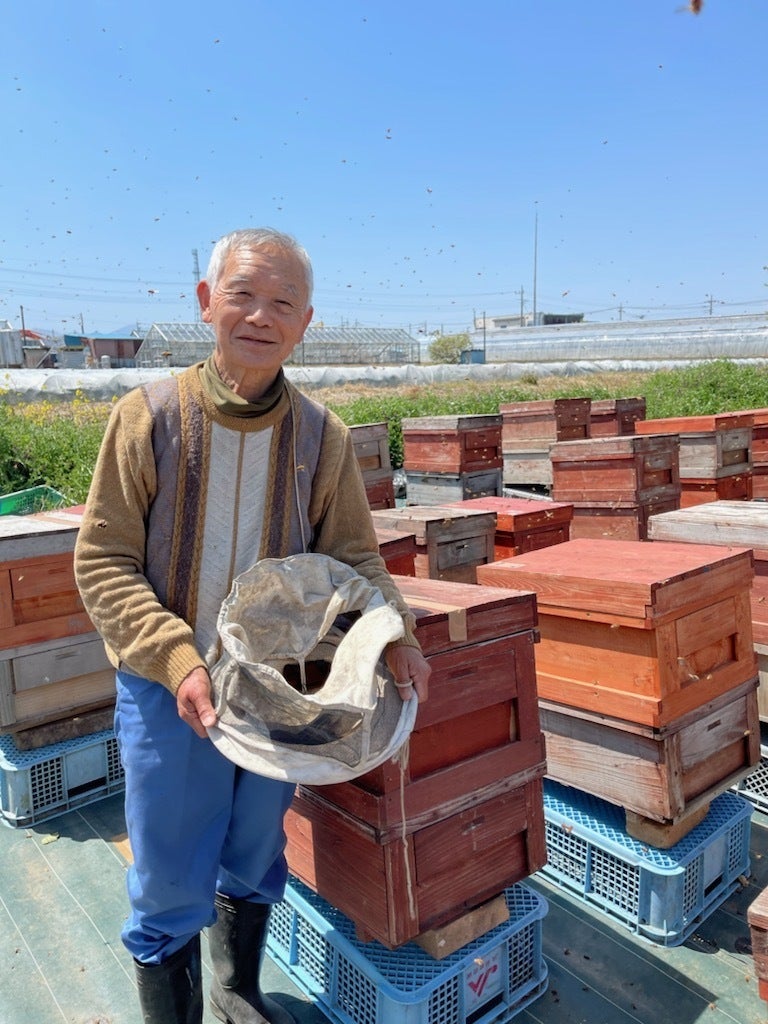 養蜂家としても長年、技術を培いながらも定年後は、同じく教員でした奥様とフリースクールを開き、不登校児童への学習指導を行なわれました。奥様と死別後は、フリースクールをを閉校し現在は、主に西洋ミツバチによる 養蜂業を営み、国内生産は「日本のはちみつ総量」の10%未満という無添加で加熱処理無しの「国産の純粋天然生はちみつ」をお届けしております。
