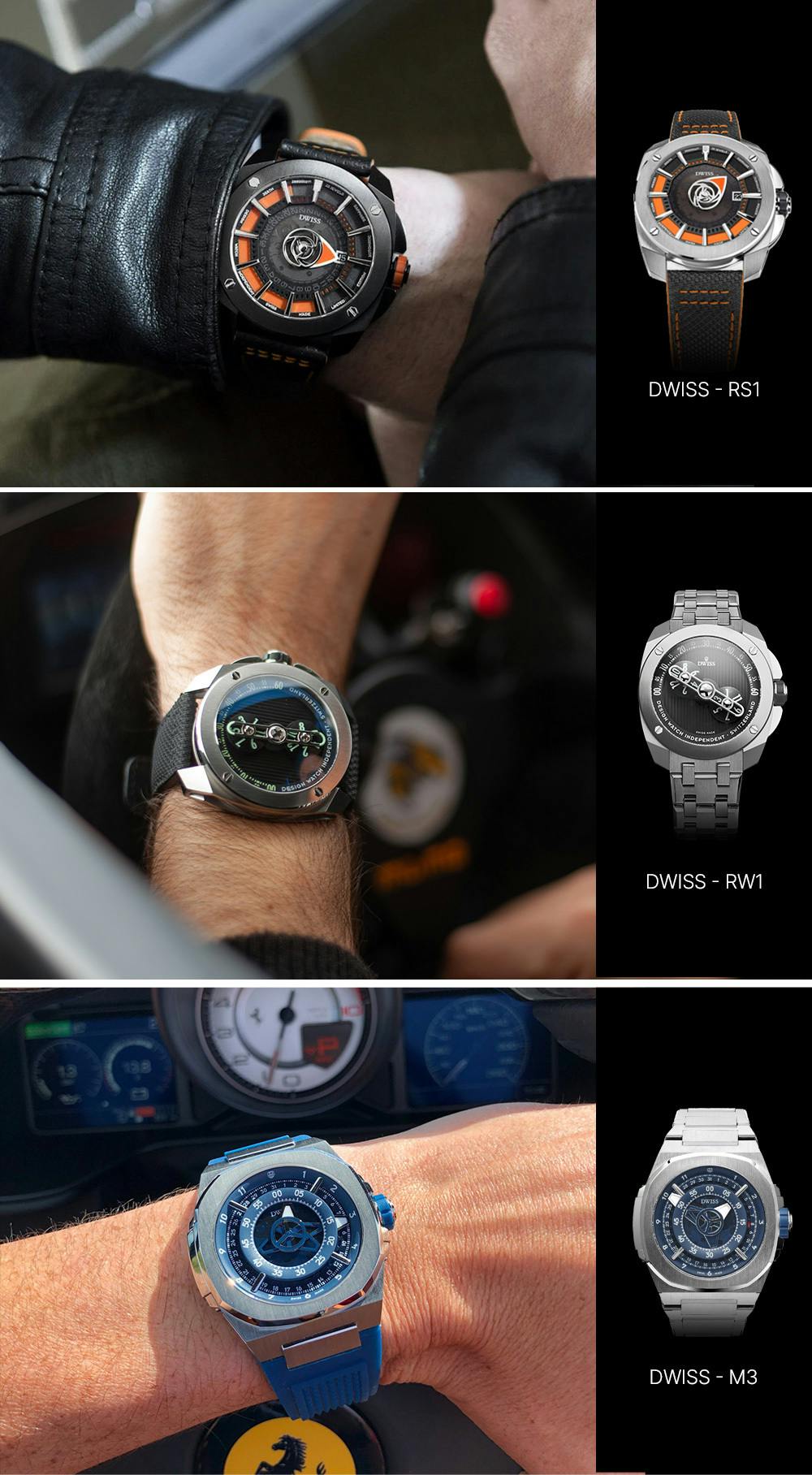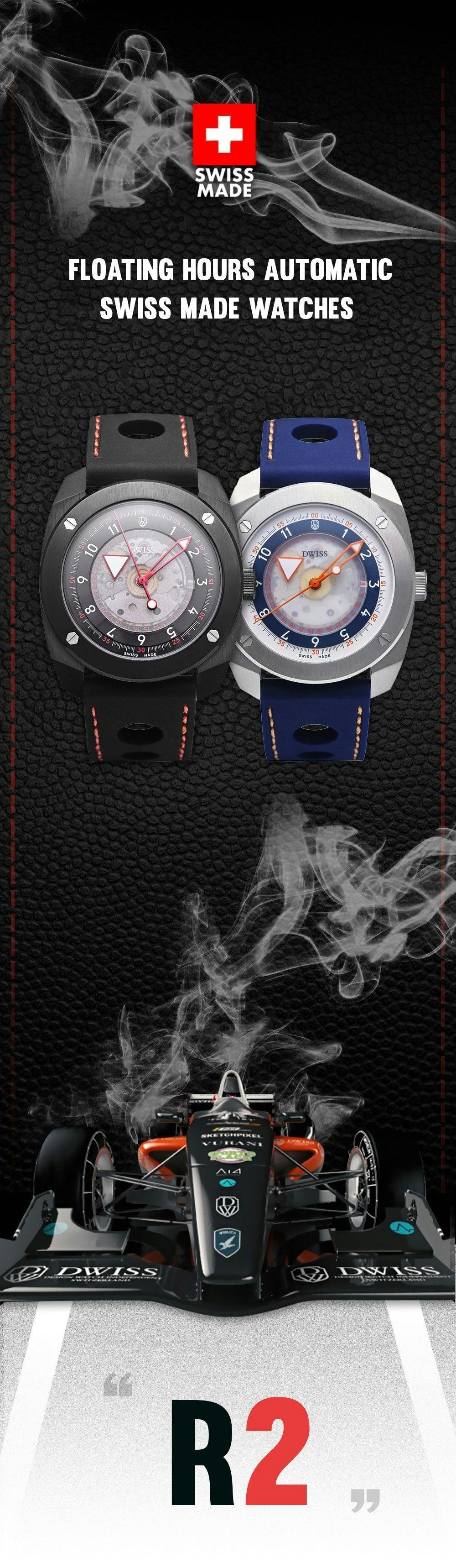 DWISSがサポートしているレーシングカーからインスピレーションを受けたR2は、フォーミュラ1の洗練されたシャープな魅力を閉じ込めたスポーティーな時計です。