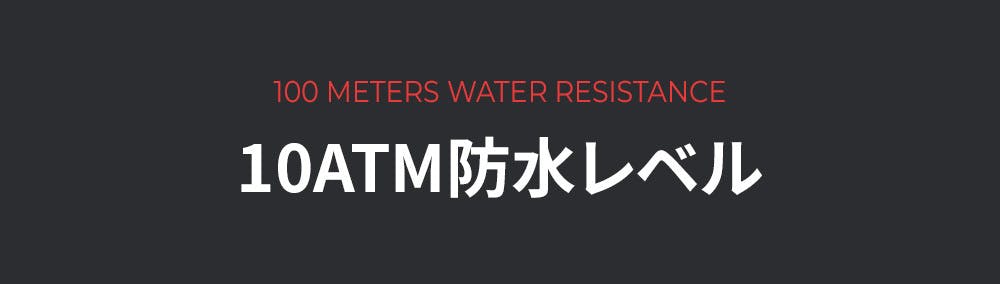 防水は10ATMで水深100mまで可能です。水泳、シュノーケリングなどマリンスポーツが可能な程度(ダイビング、潜水不可)で、十分に生活防水ができる数値です。ただし、水中でのクラウン操作はおすすめ致しません。