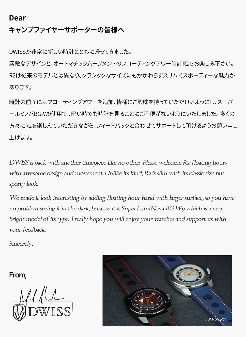 私たちは常に新しい形式で「時間」をお見せすることにこだわり、伝統から脱皮し独創的なデザインで記憶に残る印象的な時計を作ってきました。2011年に設立されて以来、スイス業界でも高い水準の製作者によりオリジナルかつ高品質の時計を生産及び提供しており、新しいムーブメントモジュールは性能テストをクリアし、生産と機能すべてにおいて安全かつ成功的にサポーターの皆様に配送されることを確信いたしております。私たちが成長できる土台となったクラウドファンディングでの成功経験を基に、日本最高のプラットフォームであるCAMPFIREで日本のサポーターの皆様へ3つの作品を披露することができ、非常に胸が高鳴っております。ありがとうございます。