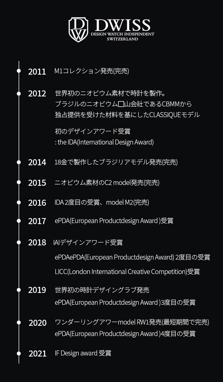 [DWISS] 私たちは既存の時計の時間表示方式を飛び越えた革新的な方式を追求し、新しい材料を使用した時計市場を開拓し販売ルートを革新する独創的なスイスデザインの時計ブランドです。DWISSの時計は、以前であれば全く模索できなかった形式で時間をお見せすることで伝統を脱皮し、見た瞬間に皆様の記憶に残るほど印象的な時計です。DWISSの時計は全て高級スイスムーブメントと職人魂を兼ね備えた限定版ラグジュアリー時計であることに自信を持っております。