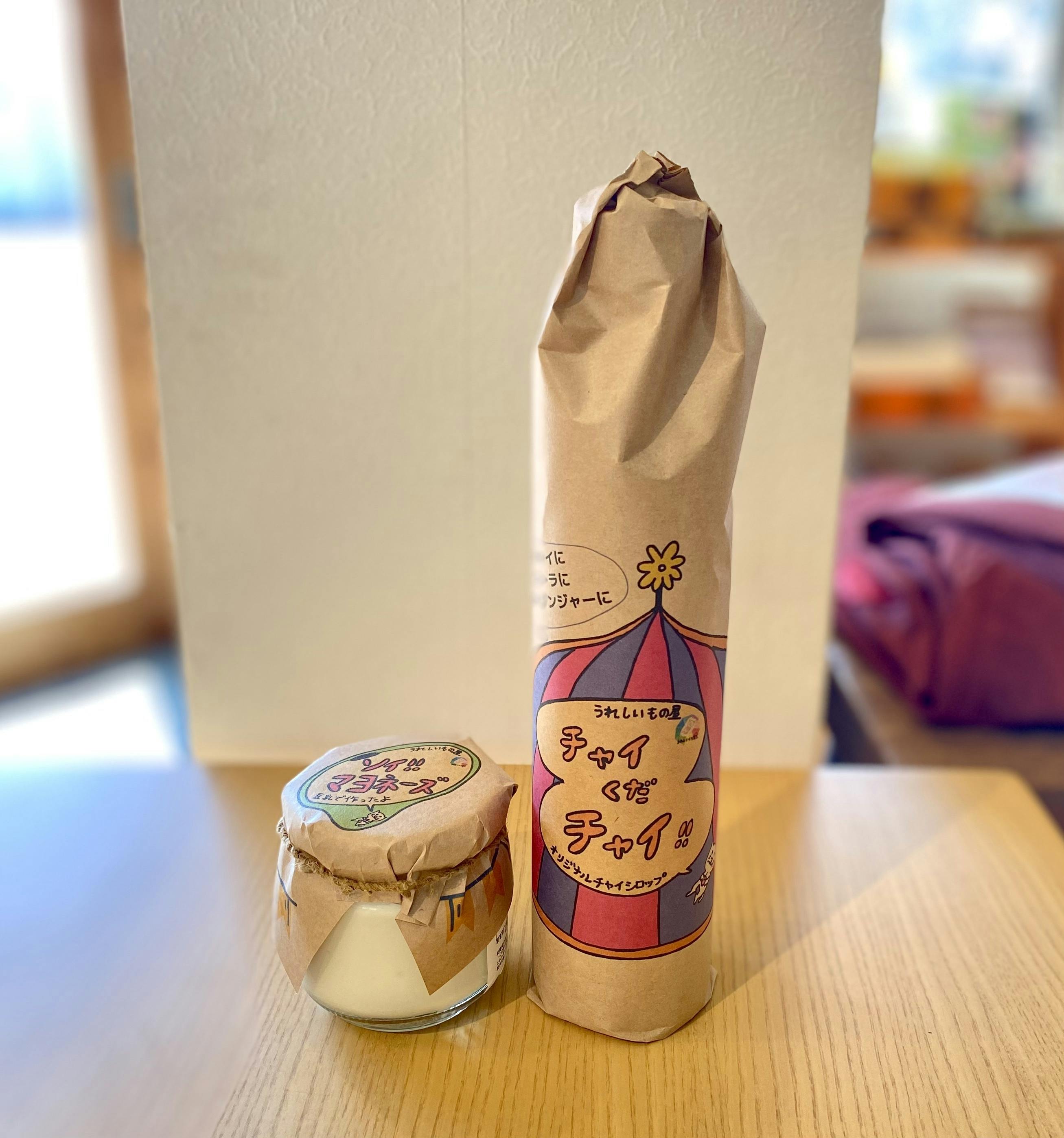2022/02/13 13:13こんにちは!うれしいもの屋です。お久しぶりの活動報告いたします!!お待たせしました!!\チャイシロップ&豆乳マヨネーズのリターンを開始いたしました!/チャイシロップ=『チャイくだチャイ!!』豆乳マヨネーズ=『ソイ!!マヨネーズ』という名前になりまして、ご支援いただいた方へ心を込めて発送いたしました。もう手元に届いていらっしゃる方もいると思います。寒いから早速飲んでくれているかな!?ぜひぜひご感想を聞かせてくださいね!!シロップとマヨネーズの使い方は包装紙の裏側に記載しておりますので、捨てずに裏も読んでください。そして、お近くにお住まいの方、店頭受け取りを希望された方はお渡しの準備ができておりますので、うれしいもの屋にお越しください。パッケージはシール方式でなく、包装紙にしました。絵はワタクシともえが描き、細かいデザインはさっちゃんと相談して作りました。なかなかの出来栄え!と自負しております・・・!フワッとマヨネーズ感。さっぱりしているのでお家でアレンジを楽しめます。とにかくこのようにして製品ができ、お届けすることができて本当に良かった。皆さんにご支援いただいたおかげです!!ありがとうございました♡チャイくだチャイ!そしてもう一つ、忘れちゃいけない シャンプー&コンディショナー♪こちらは、製造会社さんの工場の予定もあるので4月〜5月を目処にお届けする予定です。(製造会社さんも結構混雑しているそうです。) もっと見る