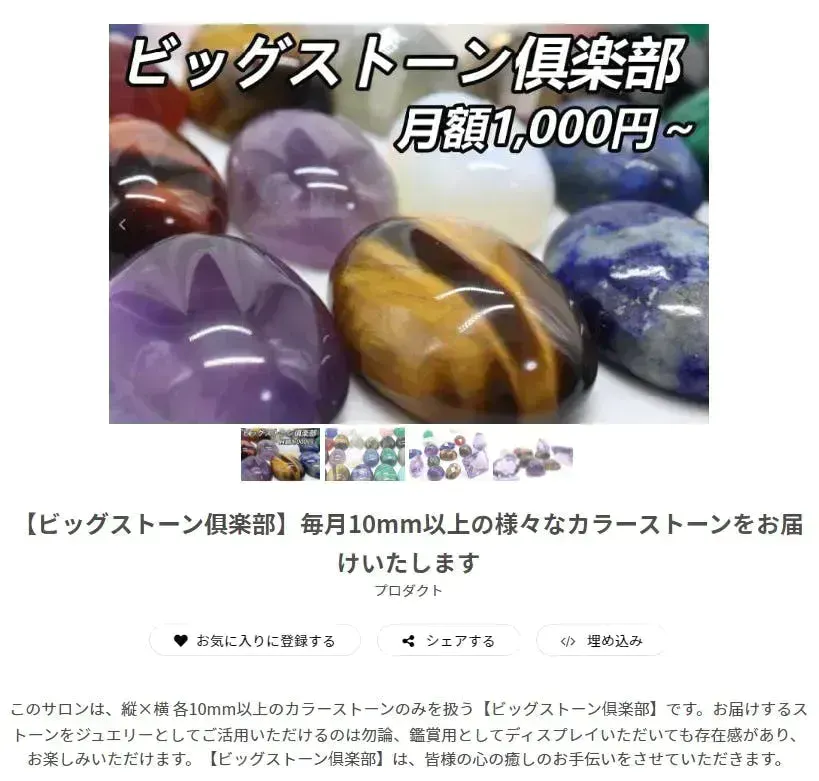 こちらのサロンは10mm以上のカラーストーンがランダムで毎月届くコミュニティです。