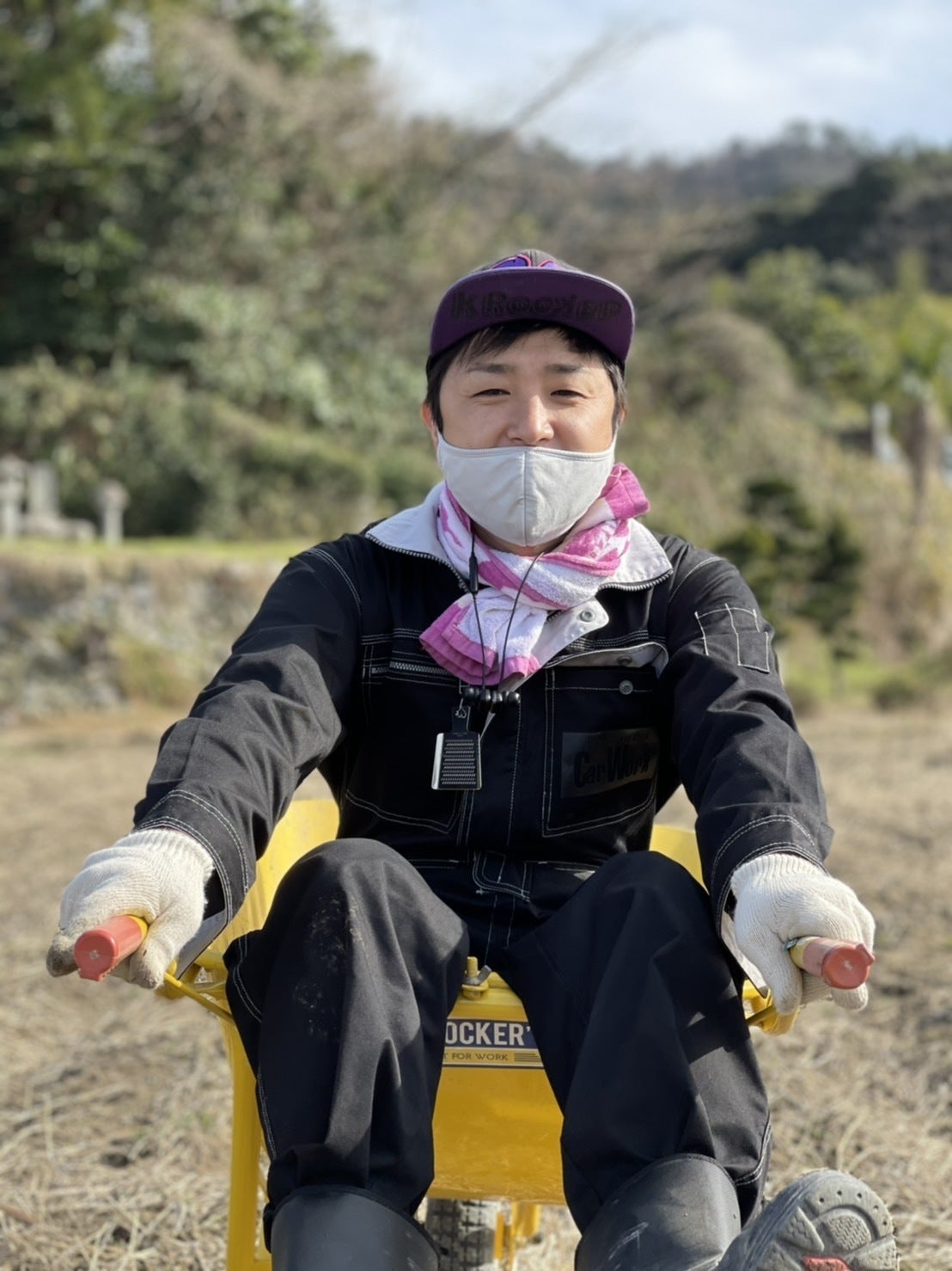 この農園の全責任者でもある鳥取県倉吉市出身の、古田悠二。悠二農園の「悠二」は彼の名前が由来です。