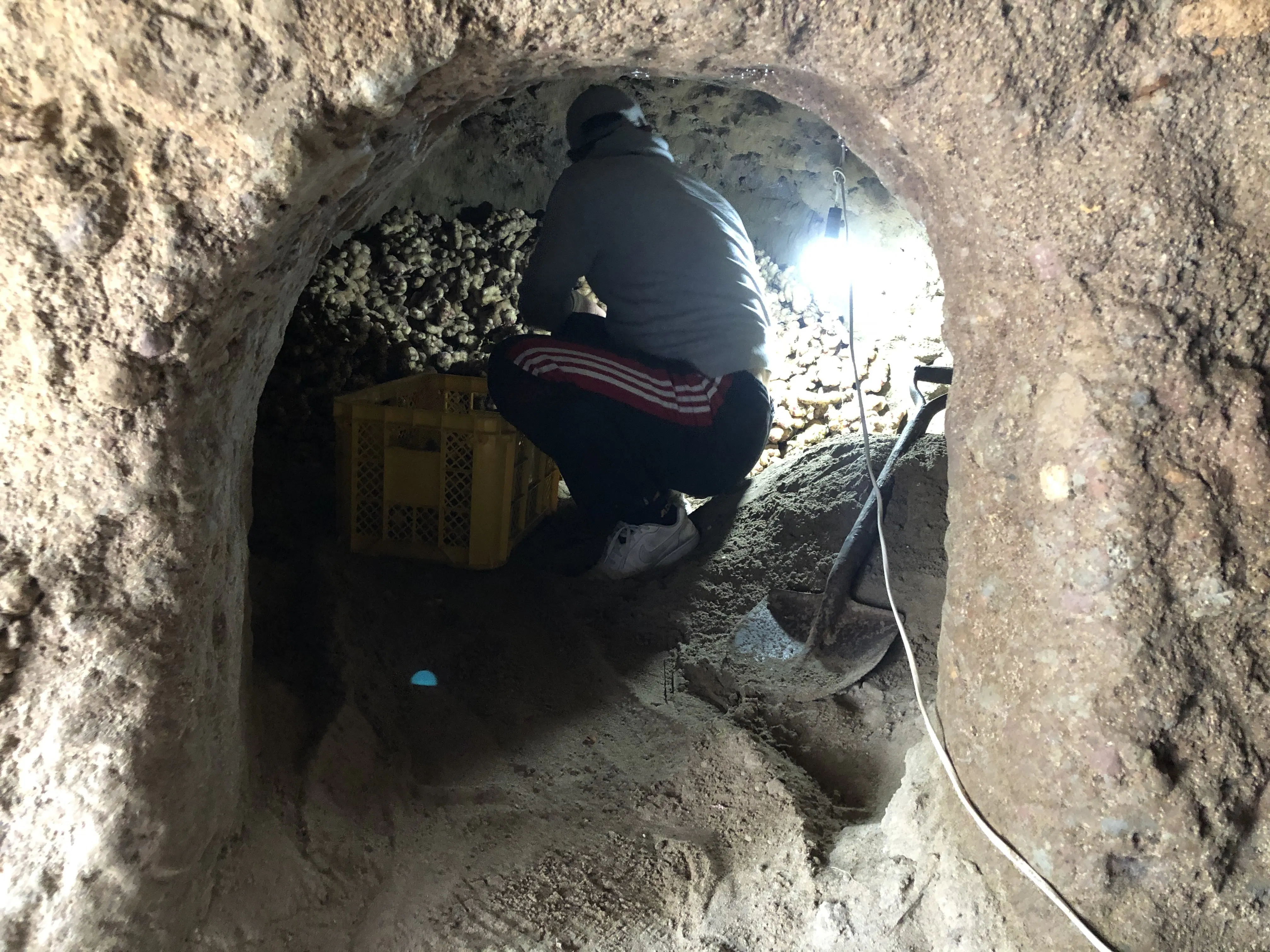 一般に販売されている生姜とは異なり、収穫後には「しょうが穴」と呼ばれる洞窟のような貯蔵庫で保管します。