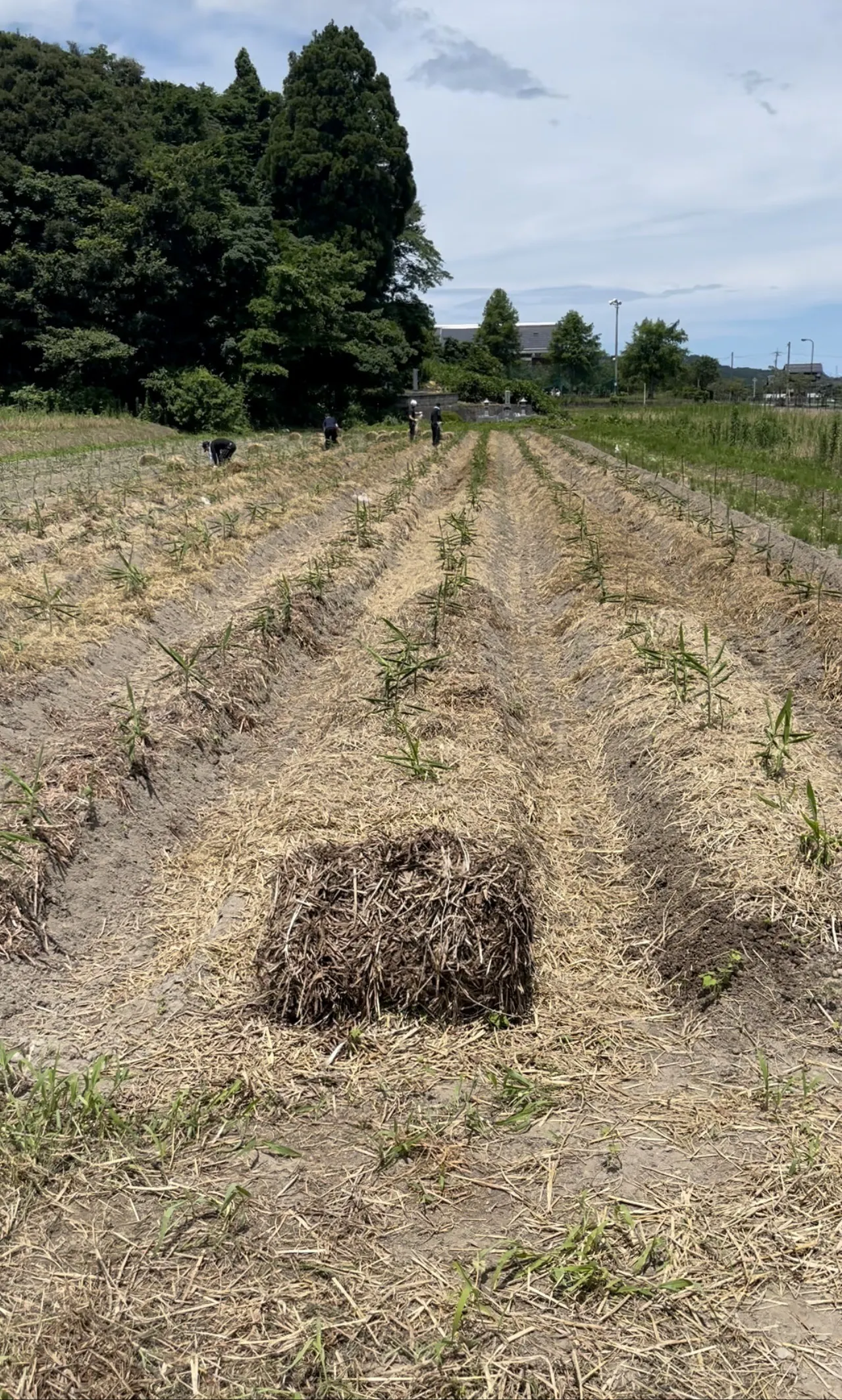 敷き藁は雑草防除のためだけでなく、土壌の乾燥を抑え、塊茎の肥大を促す役割をします。