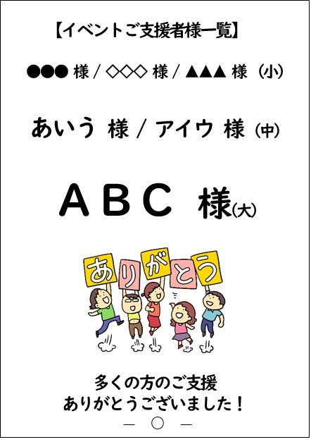 ご支援いただいた方のお名前、団体名等を記載させて頂きます。