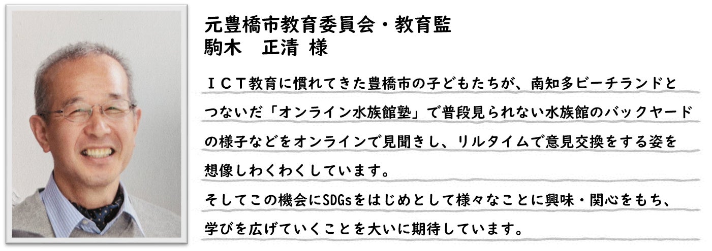 豊橋市内の小学校とオンライン水族館塾の実施をする旨は確定をしておりますが、