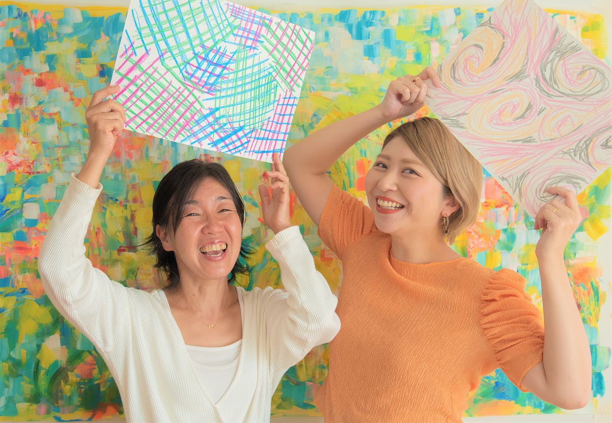実際のワークショップでは、描いたものを見せあうので、バーチャル背景ではうまく見えないことも。そんな時にも便利な、大型の作品を描いてお届けします。