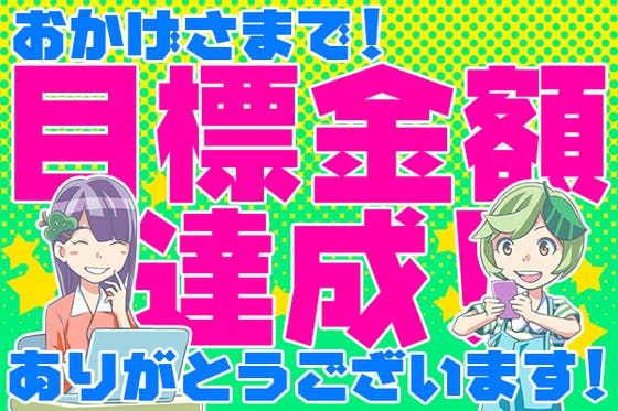 みなさまのご支援のおかげさまで、早くも目標金額の10万円を達成いたしました!