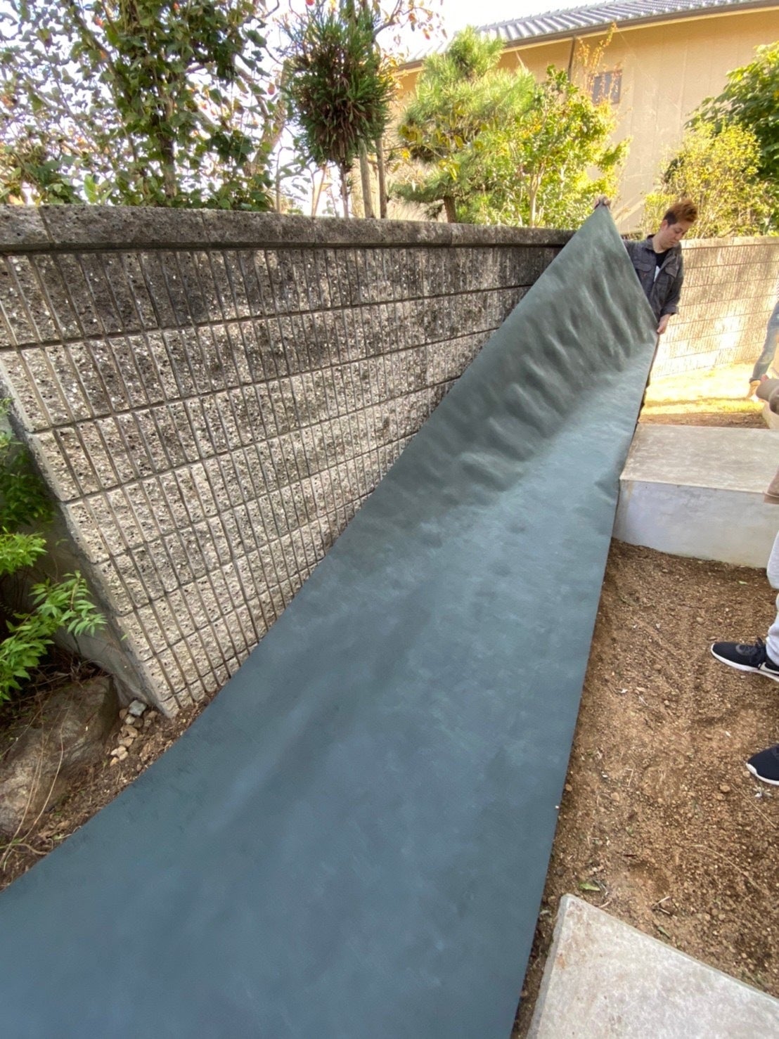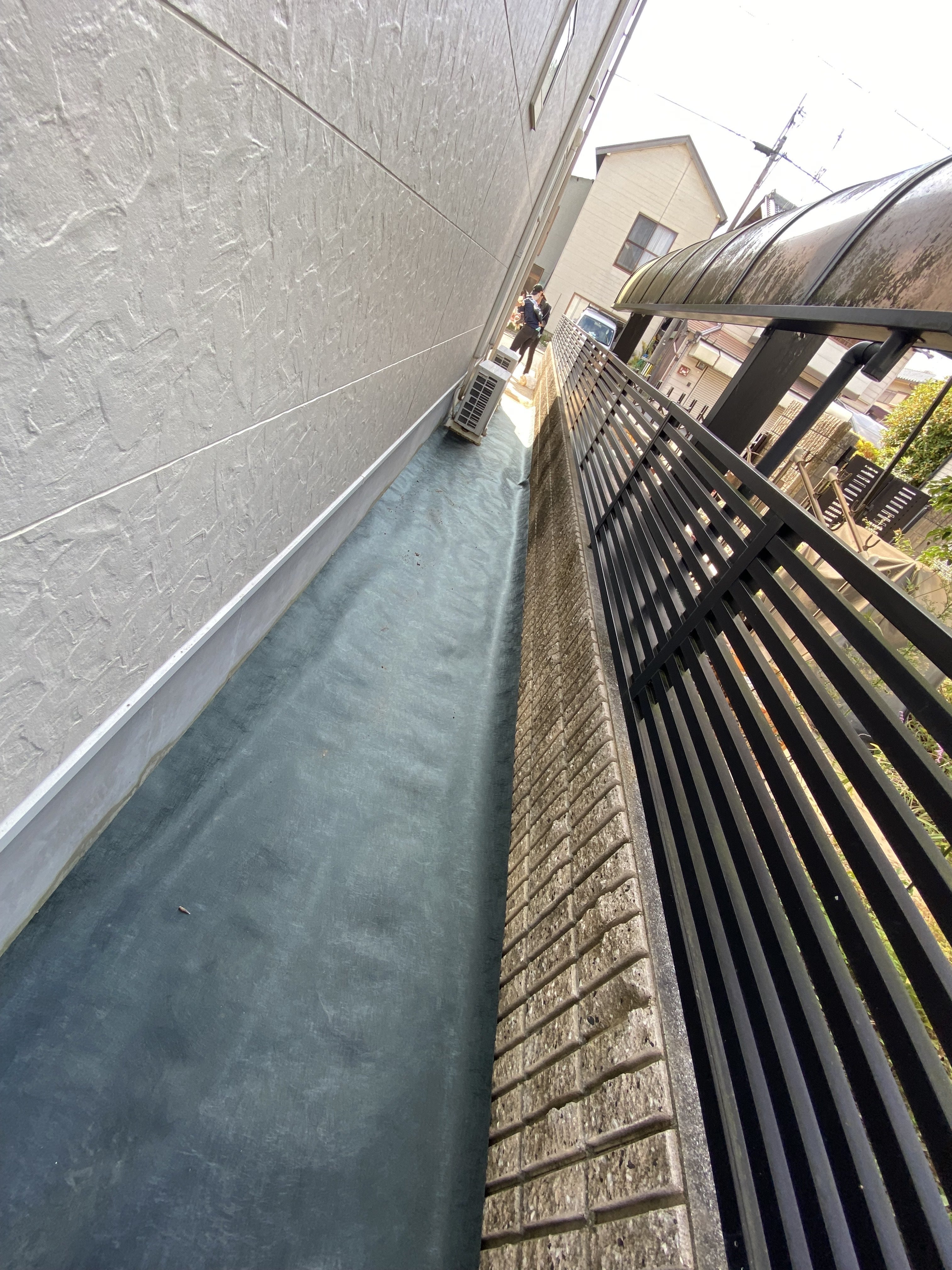 その後、路地と同じように、防草シートを敷いていきます。