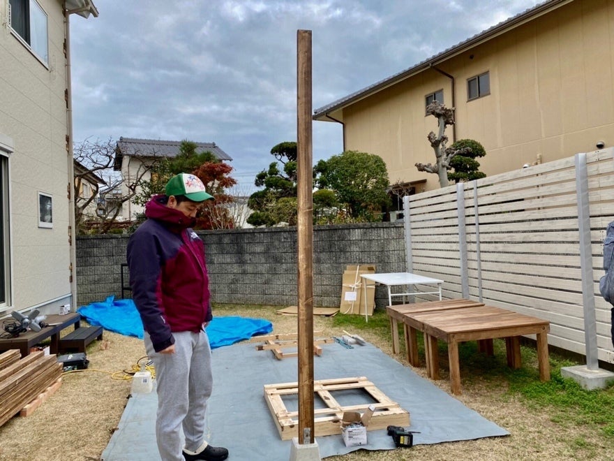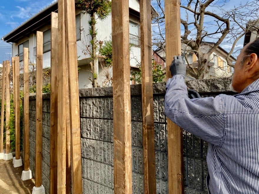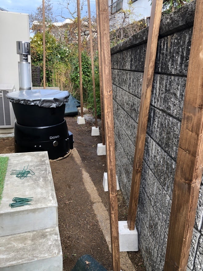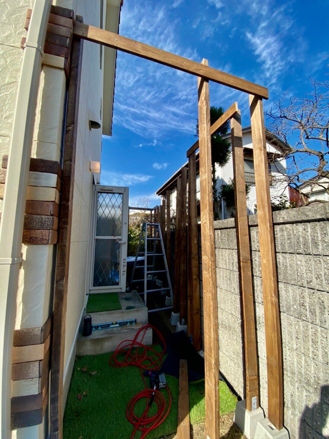 あとはこの柱に板を貼り付けて、目隠しにしていきます。