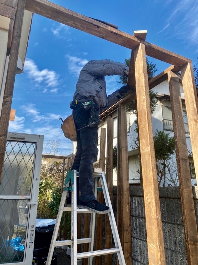 まずは、庭のスペースに屋根作ります。