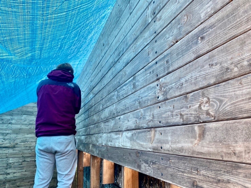 同様に2日目は横側の木を貼っていくのですが、狭くなるので大変!