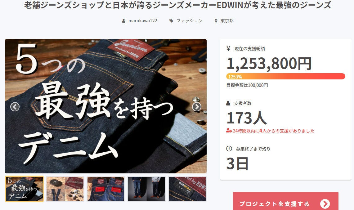 【マルカワ×EDWIN/最強のジーンズ】プロジェクト終了まであと3日です!!