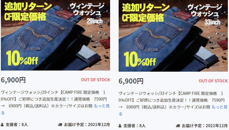 いつも応援とたくさんのご支援ありがとうございます。【マルカワ×EDWIN/最強のジーンズ】プロジェクトも残すところあとわずかです。ヴィンテージウォッシュの29インチ・33インチのリターンが完売となりましたのでお知らせいたします。本プロジェクトは12/12(日)23:59でご支援の受付が終了となります。残りあと4日!!ぜひお早めに!!