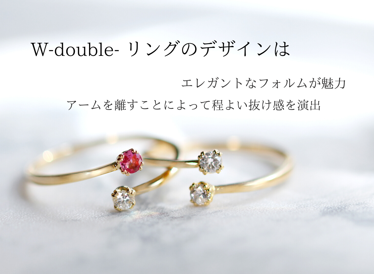 お揃いでつけるペア、ひとつのジュエリーにこめたペア…様々な「ペア」の形を「W-double-」で。