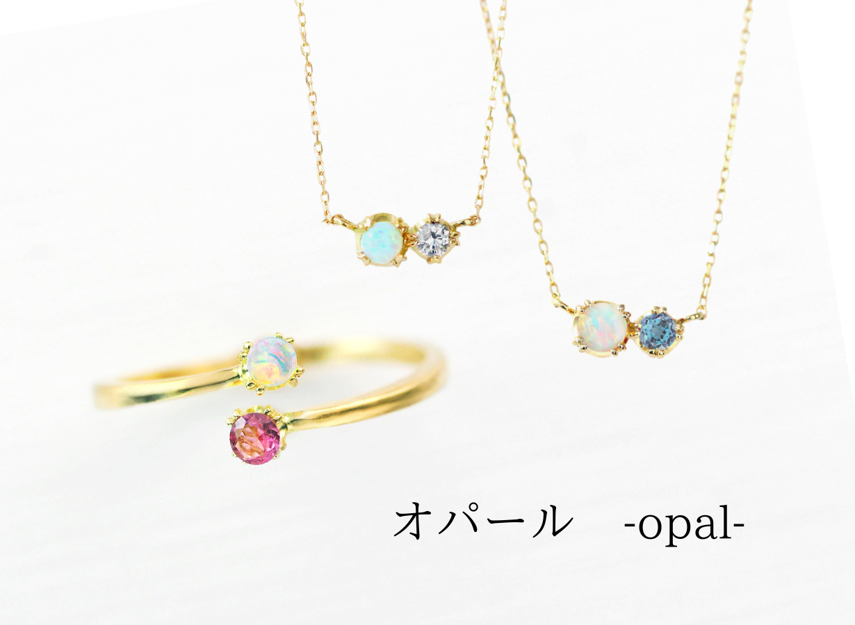 オパール(オーロラ色)とトルマリン(ピンク)は、気持ちを和らげ創造力を高めてくれるとされる組み合わせです。