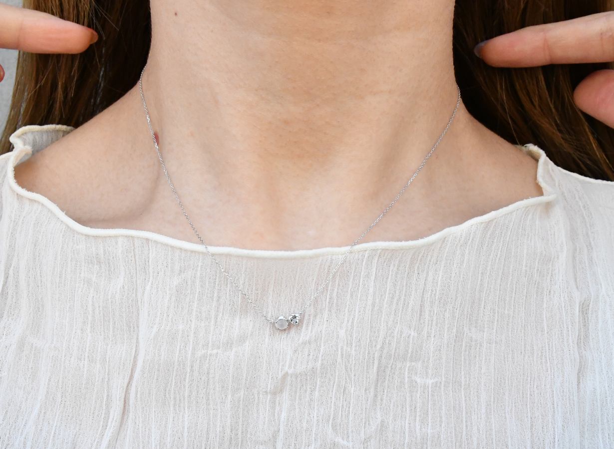 リング/ネックレスともに、宝石の輝きを引き立たせるシンプルで上品なデザイン。かに爪留めがさりげなく、大人可愛い女性の印象を与えます。控えめなサイズ感で重ね付けにも適しています。