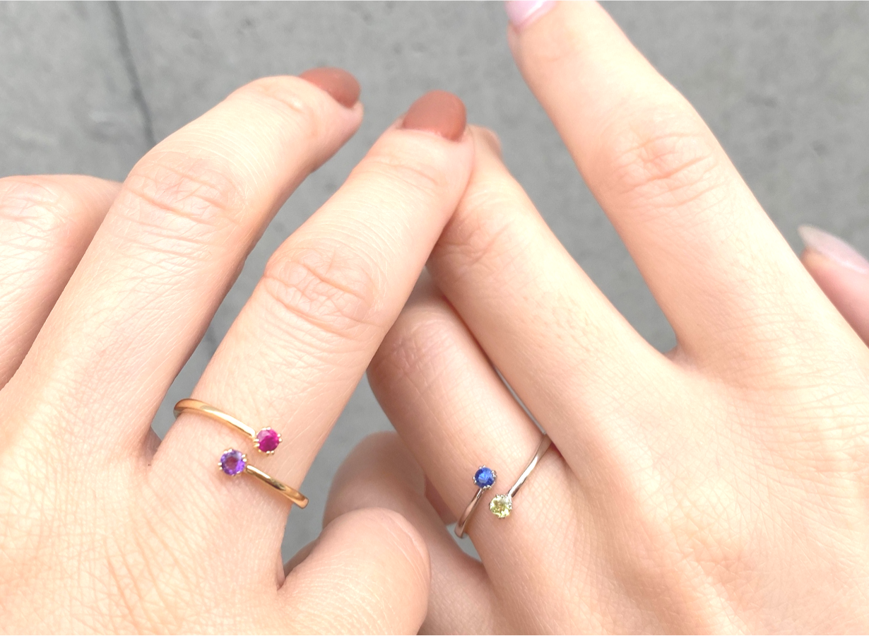 私自身も親友とお互いの誕生石&好きな色を選んで「W-double-」のリングをペアでつけています。なかなか会えないこのご時世の中でも、お揃いの特別なアイテムがあることで不思議と繋がりを感じられ、ハッピーな気持ちになります。