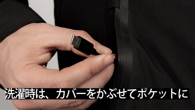 ※洗濯の際は、TypeCコネクタにダストカバーをかぶせてポケットに入れ、ジッパーを引き上げて洗濯袋に入れて下さい。