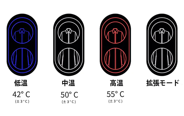 例えば、首元を中温、ボディを高温に。