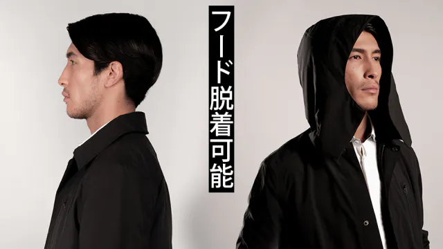 フードを外せばフォーマル感UP!営業で外回りする際にも暖かくてスマートにキマる!