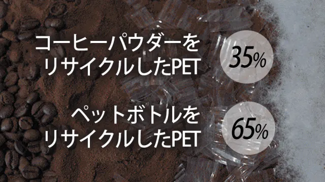 素材:コーヒーパウダーとペットボトルをリサイクルしたPET