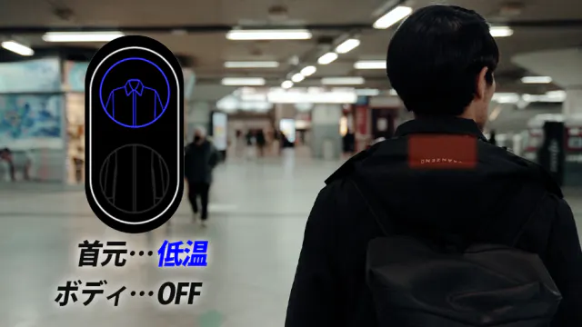 首に1つ、胸部に2つ、背面に1つの超薄型カーボンファイバー加熱パネルを内蔵。
