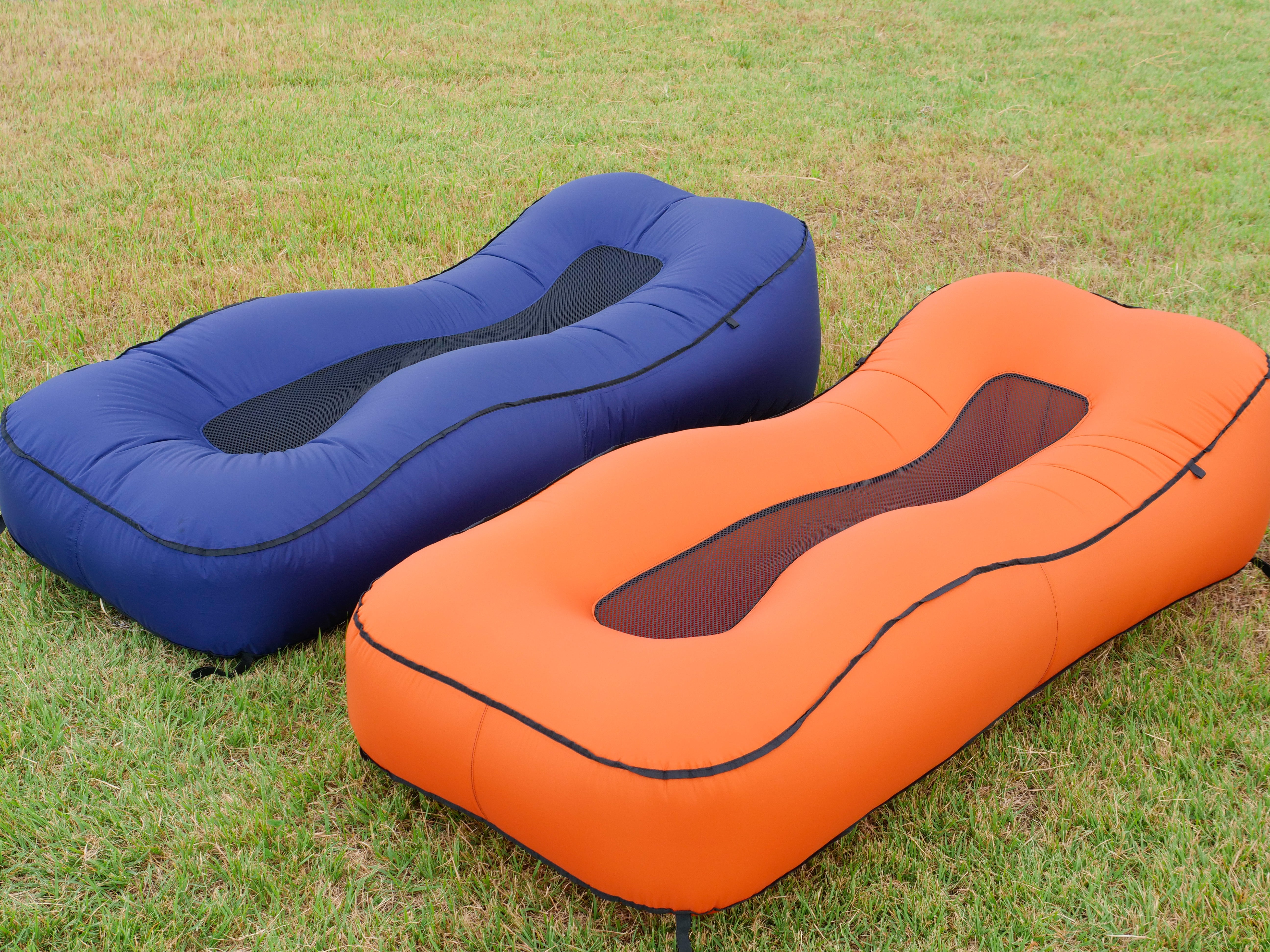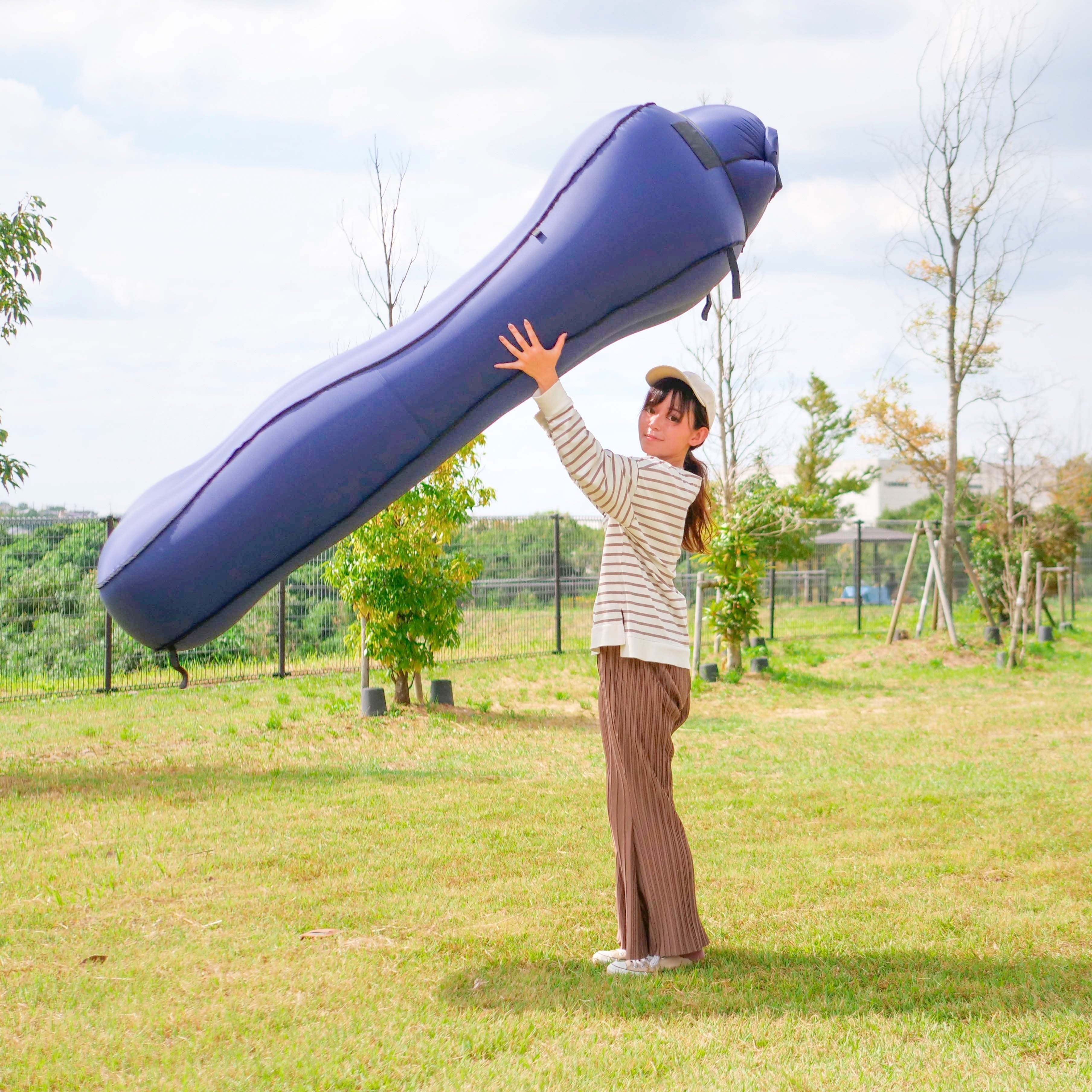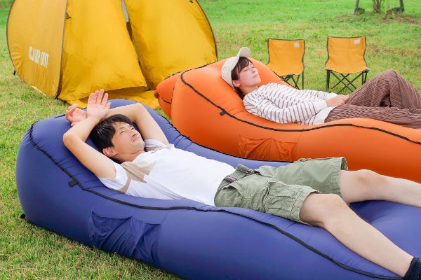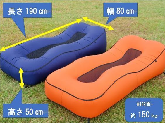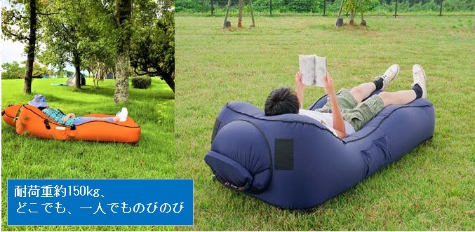 ●狭い屋内では、扇子で膨らまさせても、付属の扇板でパタパタと空気を入れても、簡単に2通りで膨らませて、ソファーのような寝心地。寝そべるだけではなくソファーとしても使えます。二人で乗っても大丈夫!