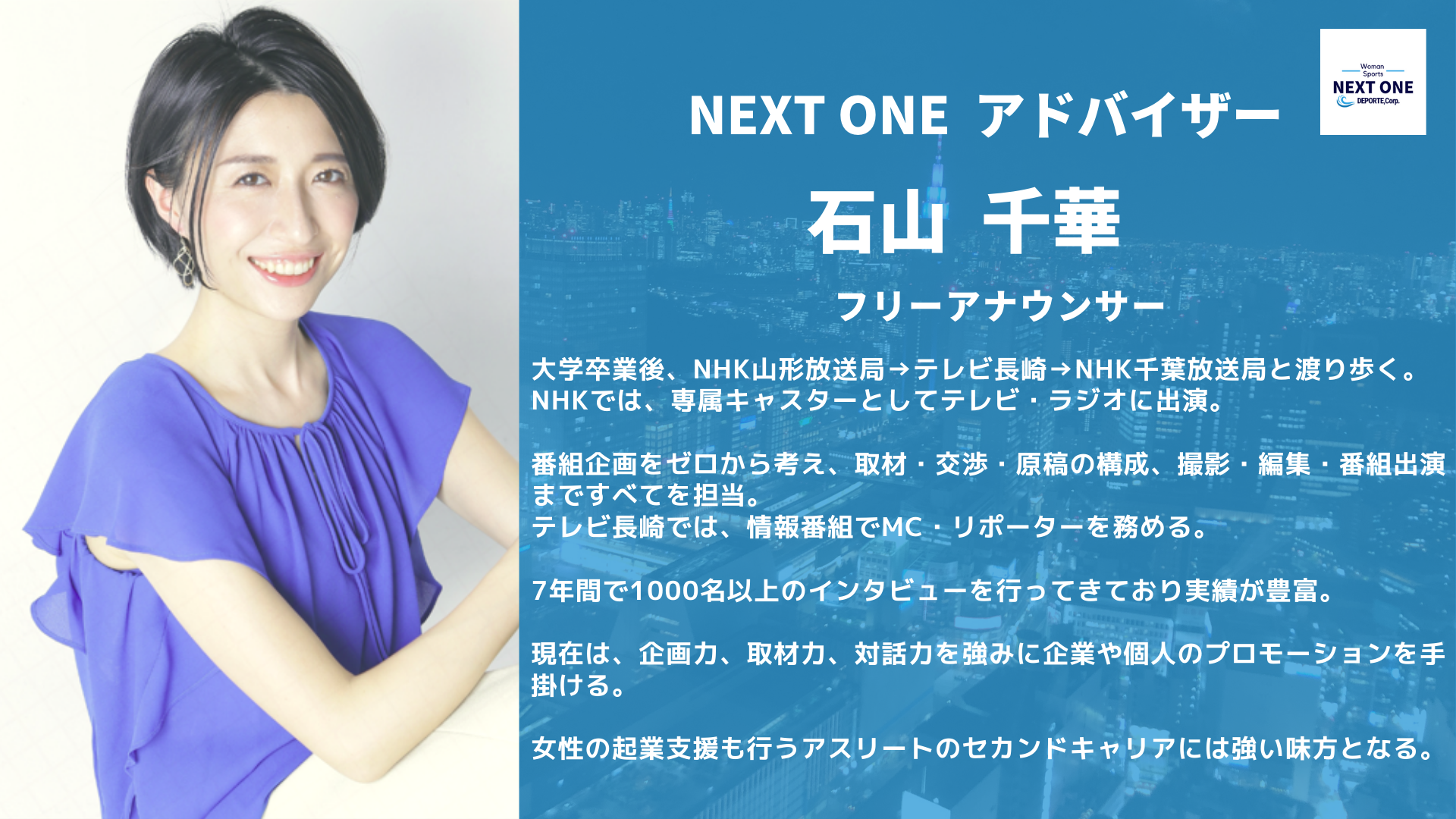 元アスリートの観点を持つタレントとして、NEXT ONEを熱く盛り上げれくれます。