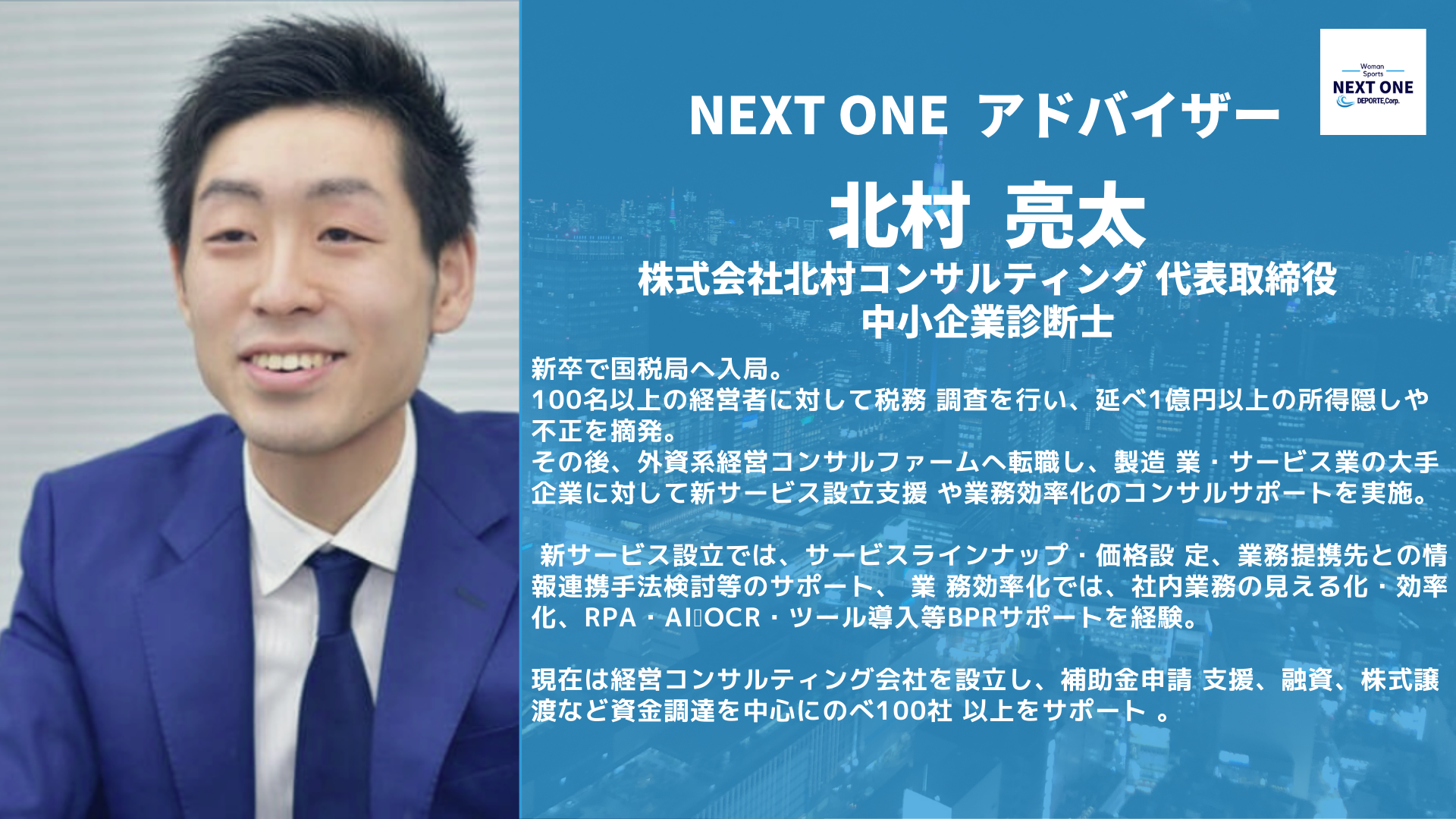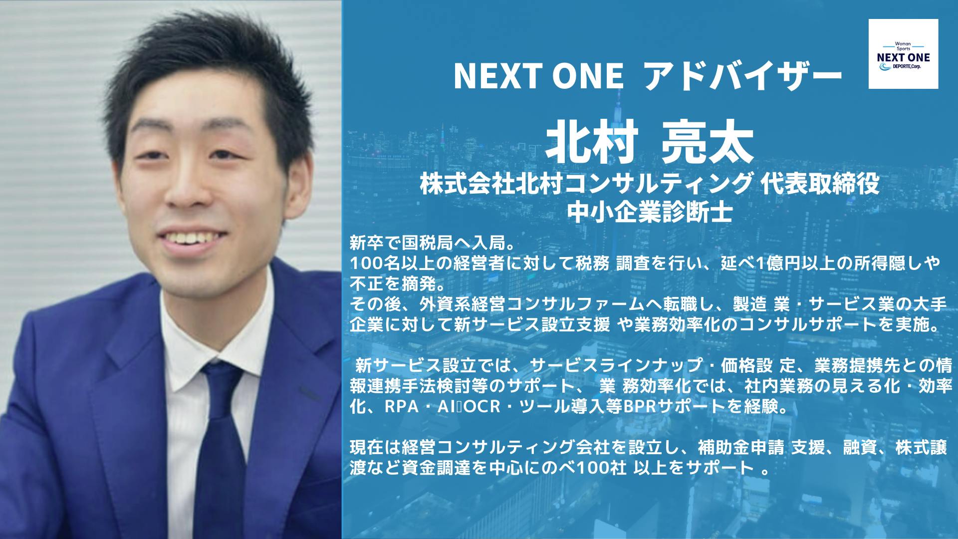 NEXT ONEを創設いたしました、株式会社DEPORTE 代表の石山隆之と申します。