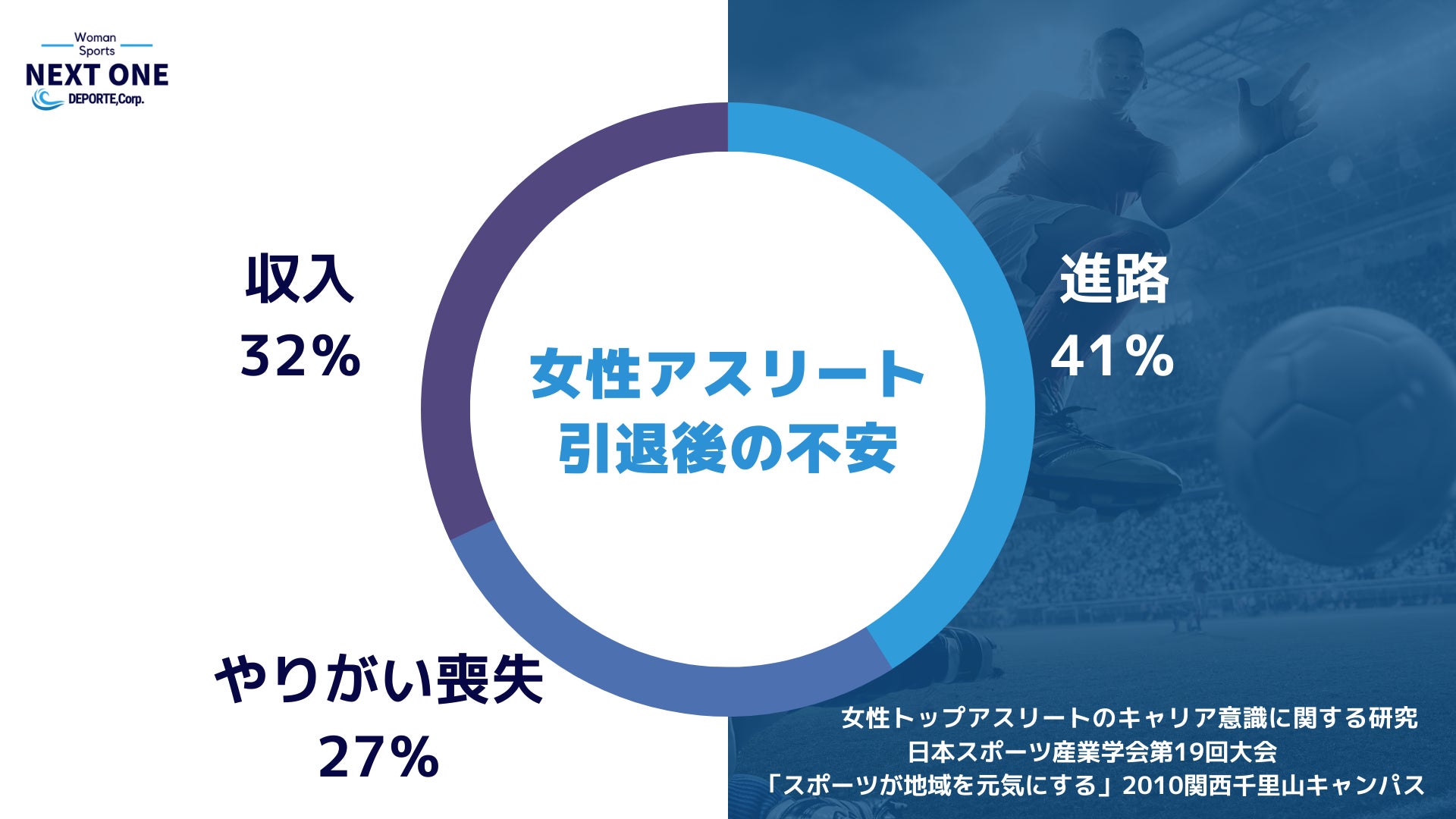女性アスリートが引退後に不安を感じるのは、「進路」「やりがい喪失」「収入」が多いです。