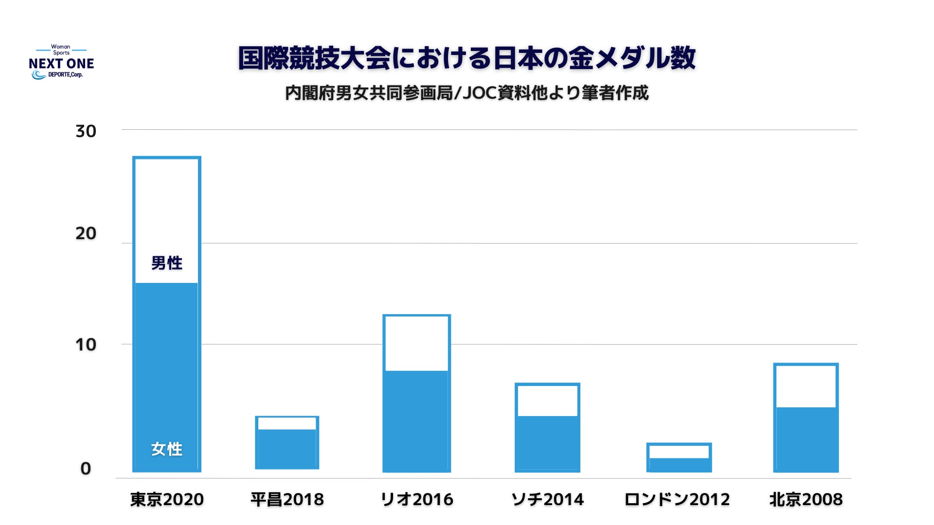 金メダル数だけみても、女性アスリートの獲得割合が圧倒的に多いです。