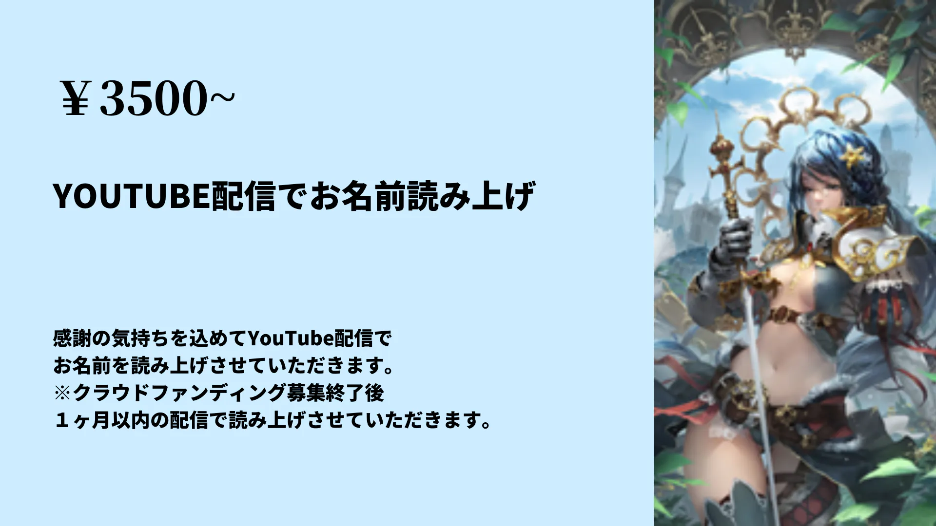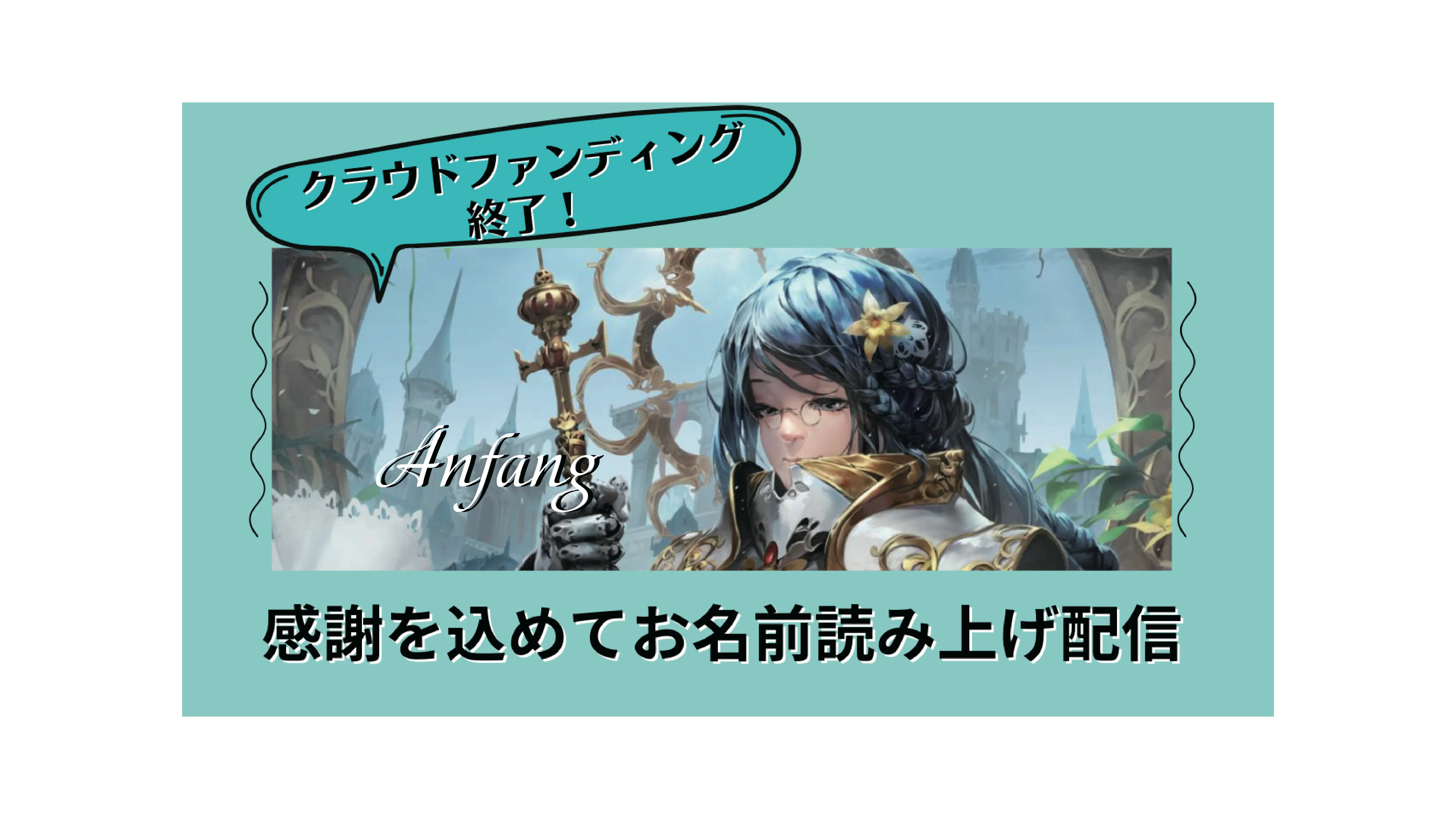 ※クラウドファンディング募集終了後1ヶ月以内の配信で読み上げさせていただきます。