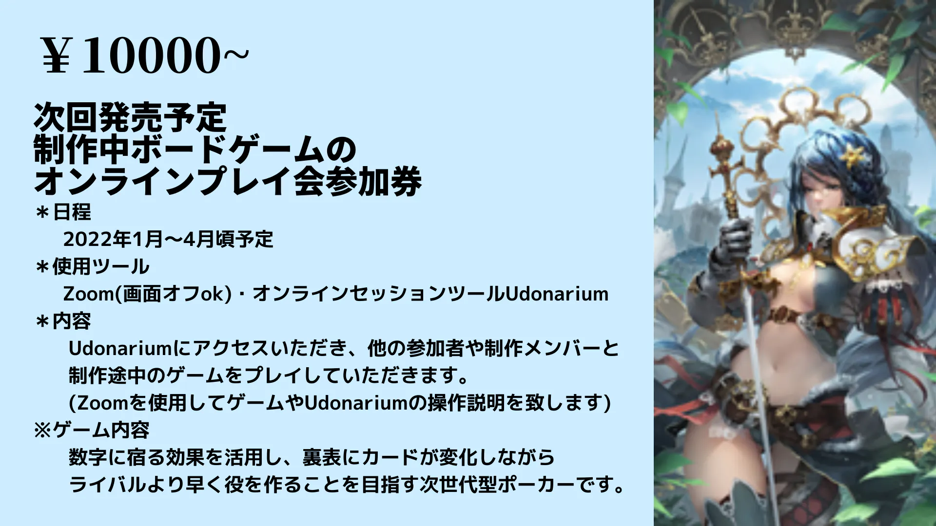 ・次回発売予定の制作中ボードゲームのオンラインテストプレイ会参加券1回