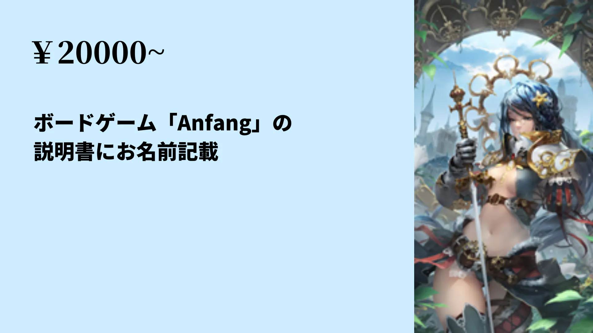 (お礼メール・ボードゲーム「Anfang」1つ(送料込)・YouTube配信でお名前読み上げ・ボードゲーム「Anfang」のオンラインプレイ会参加券1回 ・次回発売予定の制作中ボードゲームのオンラインテストプレイ会参加券1回付き)