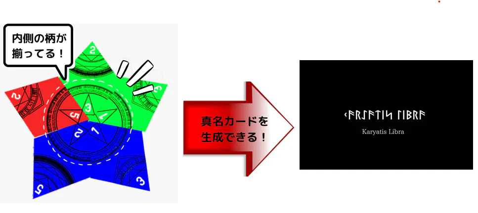真名カードは魔法陣の柄を揃えることで、生成することができます。