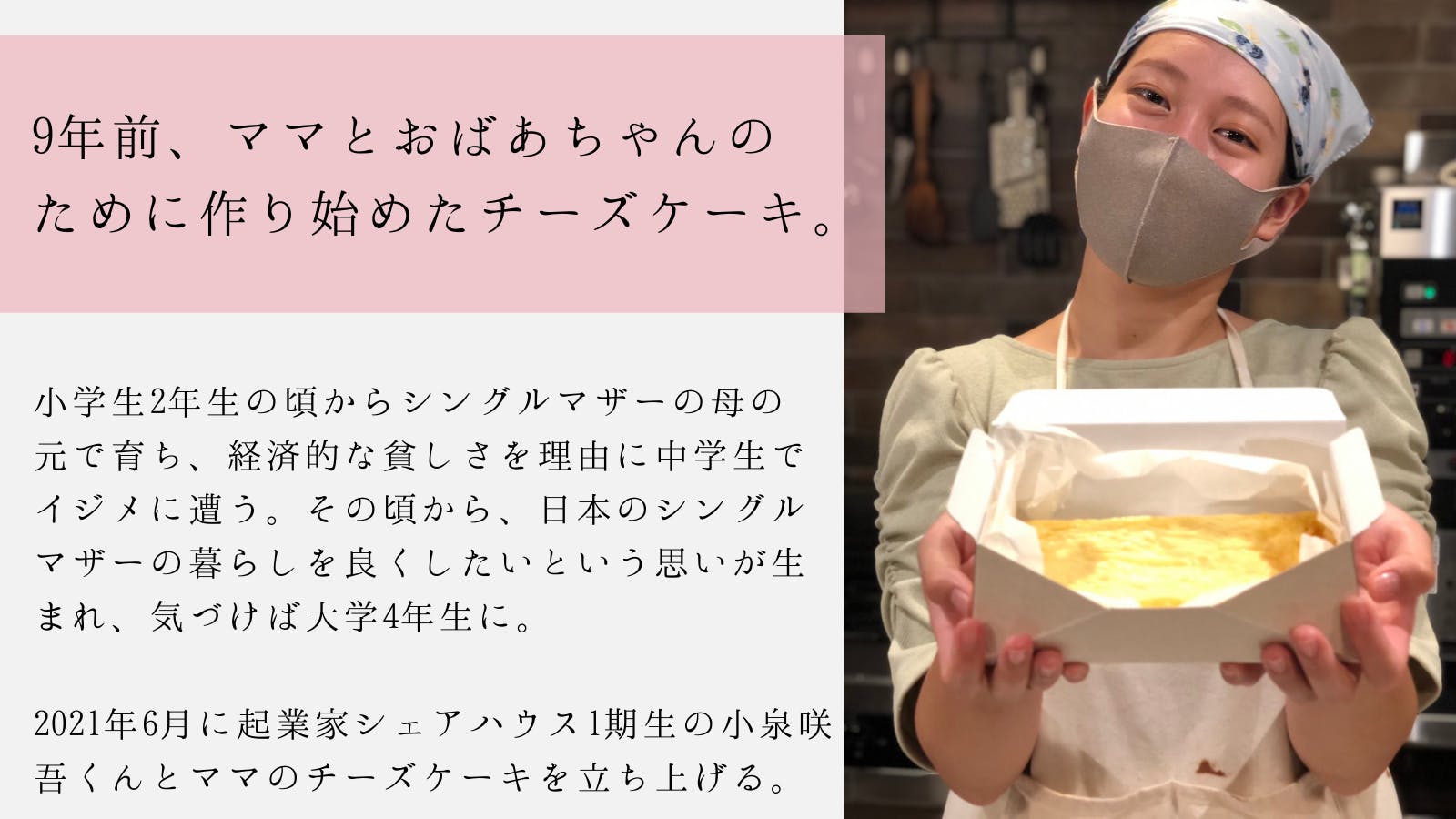 私が大学生の頃、関心の高かった物事は「経済格差が教育格差」となっている現実です。ママのチーズケーキは、この時抱いた課題を解決しようと歩みはじめた事業です。